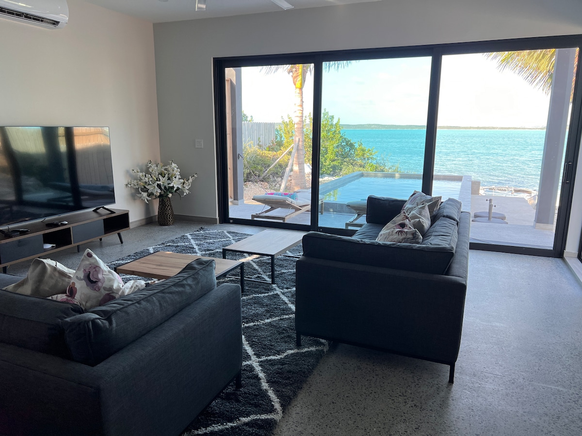 Відпочиньте й розслабтеся в цьому спокійному, стильному помешканні. Цей сучасний будинок із 2 спальнями та 2 ванними кімнатами розташований уздовж спокійної затоки Чок-Саунд, де можна насолодитися усамітненням і захопливими краєвидами. Це місце знаходиться далеко від метушні Грейс-Бей, тому ідеально підходить для гостей, які хочуть розслабитися та відновити сили. Насолоджуйтеся простором, стильним оздобленням і приголомшливим видом на водойму майже з кожної кімнати – ідеально підходить для тих, хто шукає комфорту та спокою. 15 хвилин до аеропорту 20 хвилин до Грейс-Бей 5 хвилин до пляжів Тейлор-Бей і Саподділа-Бей