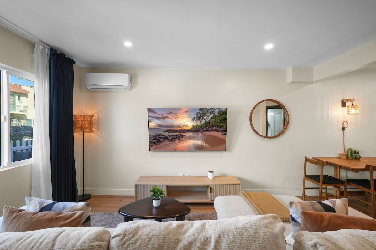 *2 кондиціонера В КОНДОМІНІУМІ + ПРАЛЬНЯ + ПАРКІНГ. *Цей кондомініум розташований посередині між округом Лос-Анджелес і округом Ориндж, велосипедним містом, безкоштовним автобусом (в 3 кварталах від будинку), який з 'єднує вас з найкращими пам' ятками та місцями в центрі Лонг-Біч, такими як культова Королева Мері, Акваріум Тихого океану, Пайн-авеню, Міський торговий центр, Пайк у Радужній гавані, конференц-центр, Шорлін-Віллидж, водні таксі AquaLink та Aqua Bus. * 55-дюймовий СМАРТ-ТЕЛЕВІЗОР, підключений до БЕЗКОШТОВНОГО ROKU, NETFLIX, ПРЯМОГО телебачення ЗАРАЗ, AMAZON PRIME.