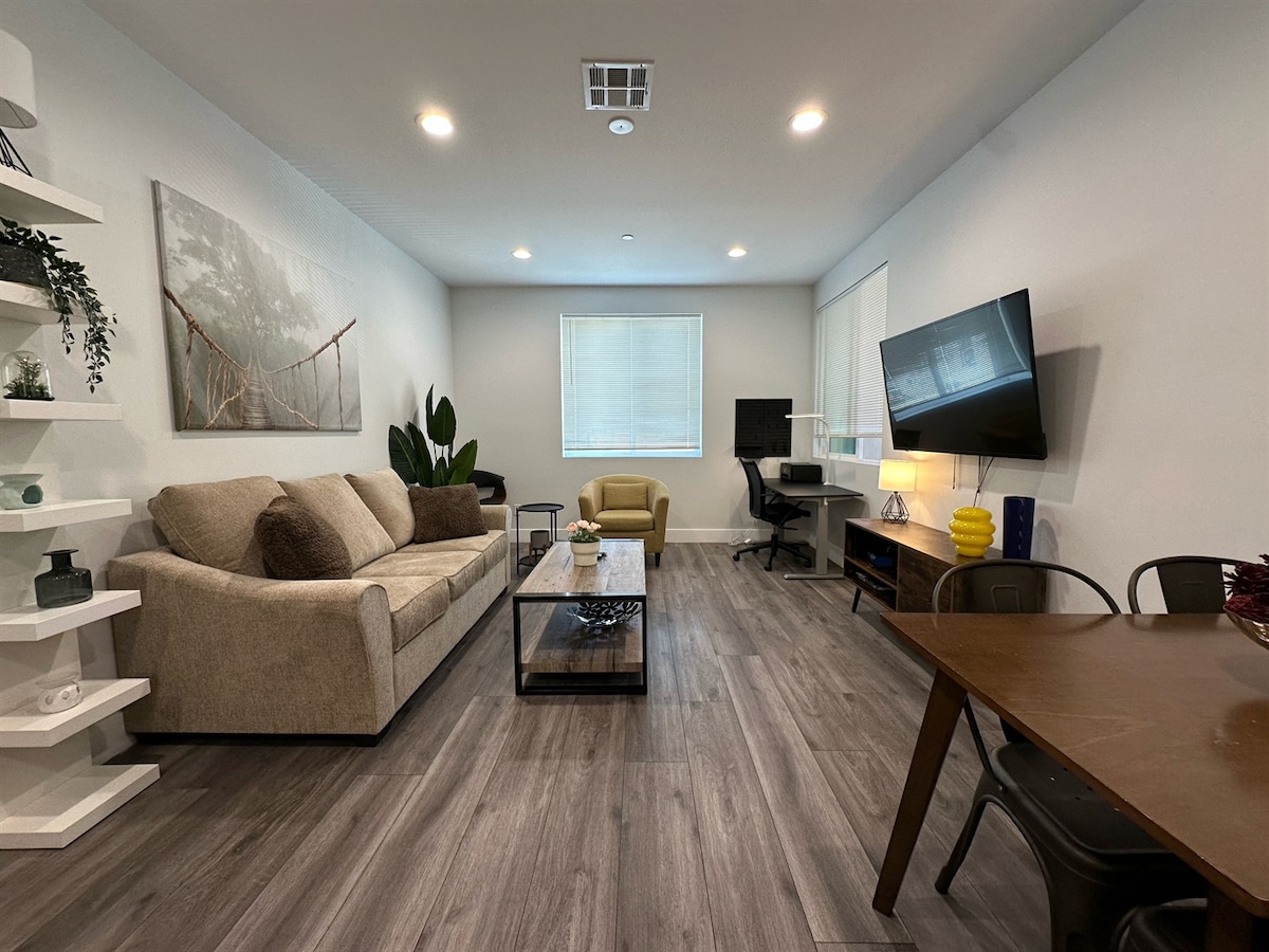Ласкаво просимо до помешкання вашої мрії. Насолоджуйтеся перебуванням у цьому прекрасному, сучасному та стильному таунхаусі, всього в двох милях від пляжу. Перегляньте все, що може запропонувати Лонг-Біч, і поверніться додому, щоб відпочити або розважитися у своєму помешканні. Розслабтеся або розважайтеся на цій відкритій підлозі, де є все необхідне для ідеального вечора. Коли закінчите, відпочивайте на балконі або вітальні, з достатньою кількістю місць, навколишньою музикою та телевізором. Раннє прибуття безкоштовне, коли готове помешкання.