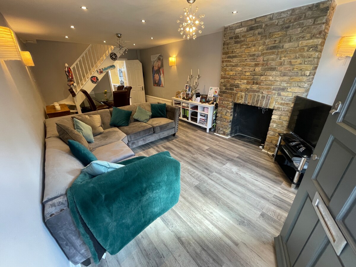 Цей красивий затишний котедж, розташований на дуже тихому зеленій дорозі, всього в 3 хвилинах ходьби від залізничного вокзалу Ілінг-Бродвей, тому ваша сім 'я буде ідеально розташована для вивчення всього Лондона. Аеропорт Хітроу знаходиться всього в 4 зупинках (20 хвилин), а в центрі Лондона - лише за 15 хвилин на новій лінії Елізабет. Ілінг може похвалитися величезним вибором міжнародних ресторанів і барів, і все це всього в декількох хвилинах ходьби. Будинок має власну приватну під 'їзну доріжку для безпечного паркування автомобіля та пункт зарядки електромобіля вагою 7 кВт *.