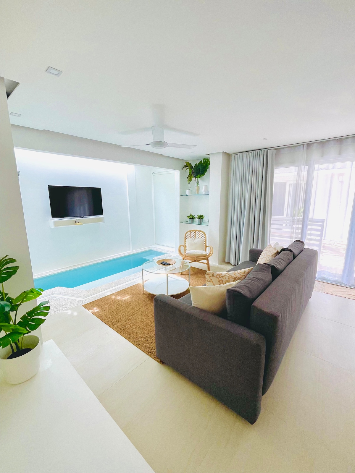 Our bright, contemporary, luxury apartment is immaculately presented. Featuring a beautiful internal dipping pool, large fully fitted kitchen and open plan living space. Only a 5 min walk from the D’Mall area and 10 min walk to all there is to offer at White Beach. Our apartment is one of the largest of many apartments available on this development, so if you are looking for more rooms, group accommodation etc, please do not hesitate to contact us.