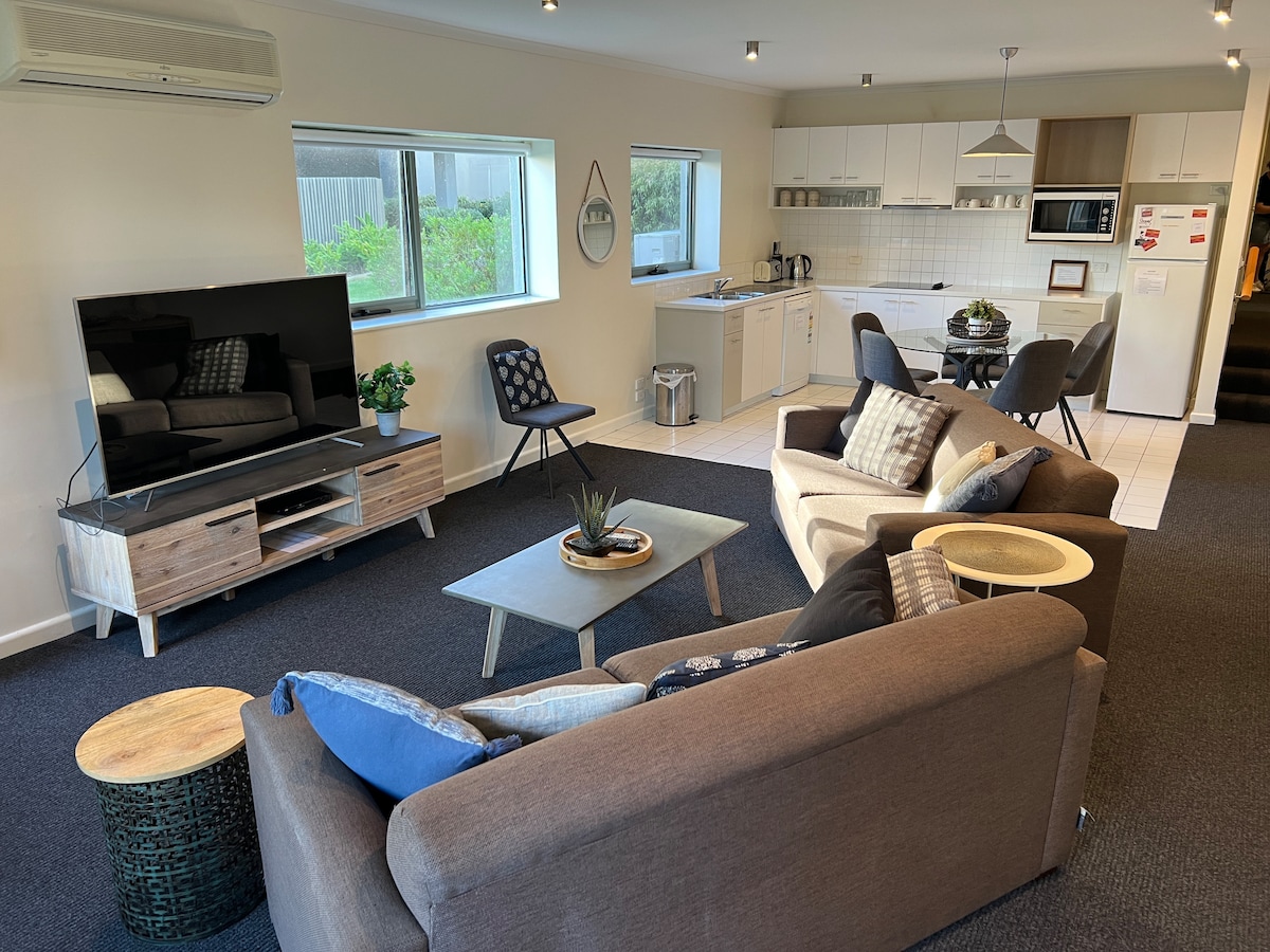 Двокімнатна квартира The Mercer з двома спальнями та двома ванними кімнатами в Джилонг. З вітальні, балкона та головної спальні відкривається приголомшливий вид на набережну. Дві повнорозмірні ванні кімнати, одна з яких розташована за межами головної спальні. Бездротовий Інтернет і повна пральня. Чудове розташування на Західному пляжі в Джилонг. Пішки до Центрального делового району. Насолоджуйтеся стильним враженням у цьому місці, розташованому в центрі міста.