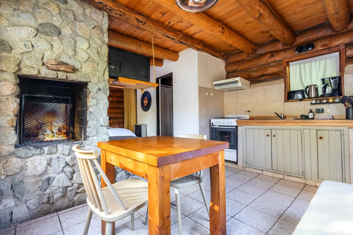 Насолоджуйтеся затишним перебуванням у цьому чарівному зрубі, оточеному лісом. Тут є повністю обладнана кухня, окрема тераса, ванна кімната з натурального каменю та затишна кімната, яка ідеально підходить для пар, які шукають усамітнення та спокою. Розташований у Circuito Chico, в декількох хвилинах від Колонії, Швейцарія, він ідеально підходить для відвідування озер, гір і типових місць Патагонії. Повернувшись, ви можете скористатися високошвидкісним Інтернетом і продовжувати насолоджуватися захоплюючими краєвидами природи.