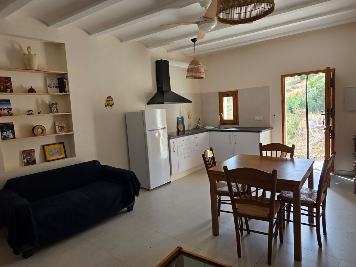 Pura naturaleza y playas vírgenes. Cortijo andaluz en la costa del Mar Mediterráneo, a 4km de las mejores playas del Parque Natural Cabo de Gata. Noches de estrellas y baños de sol durante todo el año. Un paraíso natural para desconectar. Casa de campo ecológica fuera de red, funciona con energía solar. Sencillez cerca del mar y lejos del ruido. Hay un estudio independiente en la misma finca también en alquiler vacacional pero con total privacidad de espacios para todos los huéspedes.