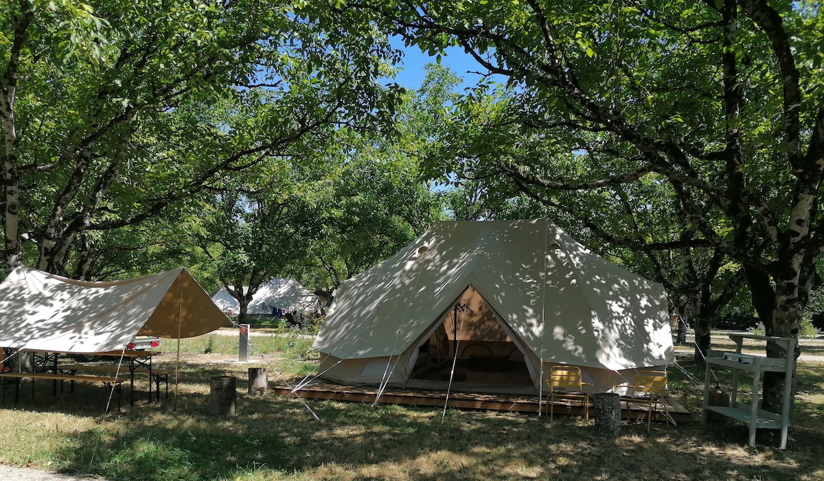 Сімейний намет Emperor величезний і вміщує до 4 людей. Зверніть увагу, що якщо у нас немає вільних дат на цьому наметі, спробуйте один із інших 3 наметів. Усі вони однакові. Ми розташовані в красивій долині з чудовими краєвидами. У нас є басейн розміром 12 х 6 м, а також великий сонячний майданчик і шезлонги. Також є дитячий басейн. У нас є настільний теніс, бадмінтон, ігри на дошках. Є багато місць для відвідування, таких як Sarlat, Roque Gageac, Domme та багато інших. До зустрічі.