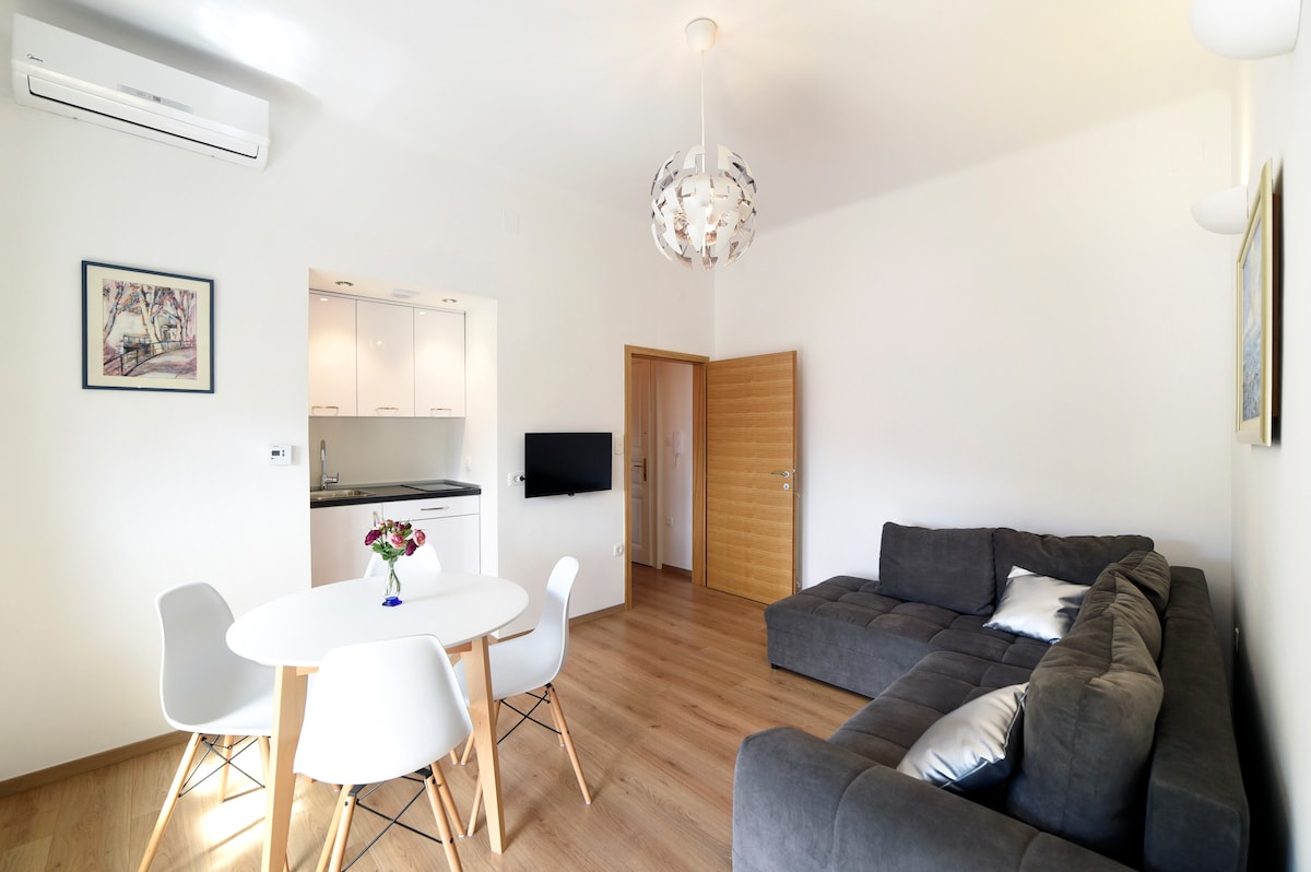 Зайдіть у білі двері з таємного саду будівлі XIX століття і увійдіть у сучасну квартиру. Прямо в центрі Загреба! Сонце тече через високі вікна, щоб освітлити красиво відремонтовану паркетну підлогу та високі стелі. Ця приватна та затишна квартира в центрі старого міста була ретельно модернізована з кожною зручністю для комфортного перебування. Основні пам 'ятки та музеї знаходяться всього в декількох хвилинах ходьби в кожному напрямку, який ви виберете. Прямо тут багато парків, найкращих ресторанів, кафе та магазинів. Ідеальне місце для розміщення; в центрі всього, але приємне та затишне. Простора та нещодавно відремонтована квартира Zagreb 's Heart розташована в ІДЕАЛЬНОМУ МІСЦІ. Прямо посеред усього цього, але ДУЖЕ ТИХО І СПОКІЙНО з входом до саду. Повна конфіденційність! Місце розташування є одним з найкращих у Загребі, оскільки вулиця Іліца веде вас безпосередньо пішки за 5 хвилин до Головної площі або за 3 хвилини до всіх музеїв та основних історичних місць (2 хвилини ходьби від фунікулера до старого Верхнього міста). Інфраструктура відмінна; по сусідству знаходиться банк з банкоматом, декількома продуктовими магазинами, магазинами оздоровчого харчування та пекарнями в декількох кроках, багато ресторанів і магазинів та відомий відкритий ринок Долац знаходиться в декількох хвилинах ходьби. Це найвідоміша торгова вулиця Загреба. Якщо ви любите гуляти, бігати або просто відпочивати в парку, один із найбільших парків Тушканак знаходиться в 3 хвилинах ходьби від квартири. Прохід до парку Тушканац з вулиці Іліци є дуже популярним районом з висококласними дизайнерськими ательє, барами та художнім кінотеатром. Пішохідна зона з популярною Квітковою площею також знаходиться в декількох хвилинах ходьби. Там ви можете знайти єдиний торговий центр у центрі міста. Повністю мебльована та обладнана квартира з високими стелями, які поєднують історичні елементи з сучасним декором, може зручно розмістити 3 гостей та дитину. Є одне ліжко розміру King size, одне розкладне ліжко та ліжечко. Місце складається з просторої вітальні, кухні та їдальні, дуже великої спальні з ліжком King size та достатньою площею шафи та ванною кімнатою з душем. Це місце дуже тихе зі свіжим садовим повітрям, тому ви можете залишити свої вікна відкритими в теплі дні та ночі, що є рідкістю в центрі міста. Він розташований на другому поверсі, доступ до якого забезпечують сходи, закріплені окремим входом з переговорним пристроєм. Сама будівля була нещодавно реконструйована і дуже доглянута. Ми надаємо безлімітний WI-FI безкоштовно. В квартирі є ЖК-телевізор з більш ніж 80 міжнародними каналами, включаючи спортивні канали, новинні канали, дитячі канали тощо. Квартира дуже тепла взимку з центральним опалювальним пристроєм для індивідуального регулювання, а також прохолодна влітку з кондиціонером. Кухня повністю обладнана (холодильник, морозильна камера, плита, духовка, мікрохвильова піч, електричний чайник, тостер, а також весь необхідний посуд для приготування та обслуговування). Також є пральна машина, прасувальна дошка та праска. Також надається фен. Свіжа постільна білизна та багато білих пухнастих рушників є стандартною пропозицією квартири, усі професійно прибрані. Для кожного гостя є пара одноразових тапочок, щоб кожен гість почувався комфортніше. Ви матимете ексклюзивни
