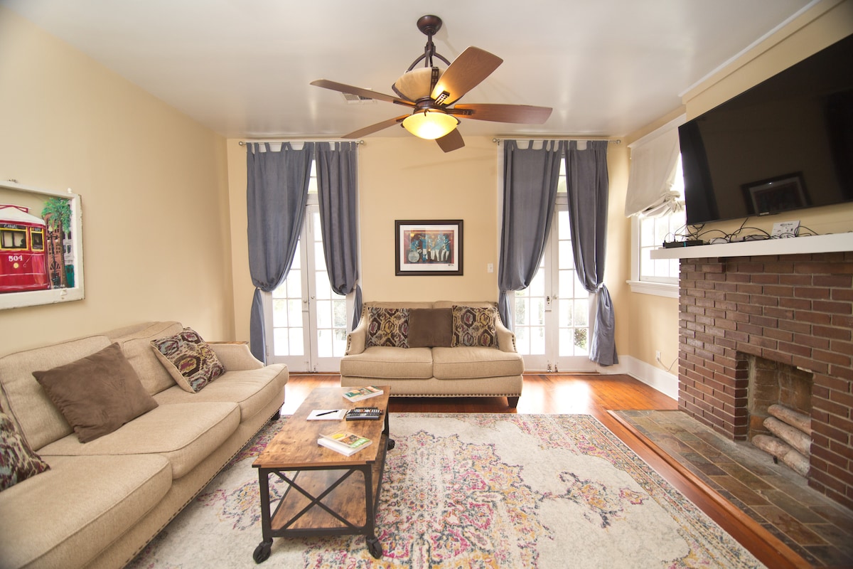 Сходинки до історичного трамвая на Сент-Чарльз-авеню та пішки до магазинів Magazine St, ресторанів, кави, барів. Відремонтований двоспальний будинок із 3 спальнями «king-size»/3 суміжними ванними кімнатами, двоспальними салонами, їдальнею, кухнею та вітальнею. Відпочиньте на веранді, насолоджуйтеся стильним декором, сідайте на трамвай до всесвітньо відомого Французького кварталу, парку Одюбон і зоопарку, прогуляйтеся магазинами та ресторанами Magazine St або сідайте на автобус Magazine St до Музею Другої світової війни, Нижнього району Гарден та району Складів.