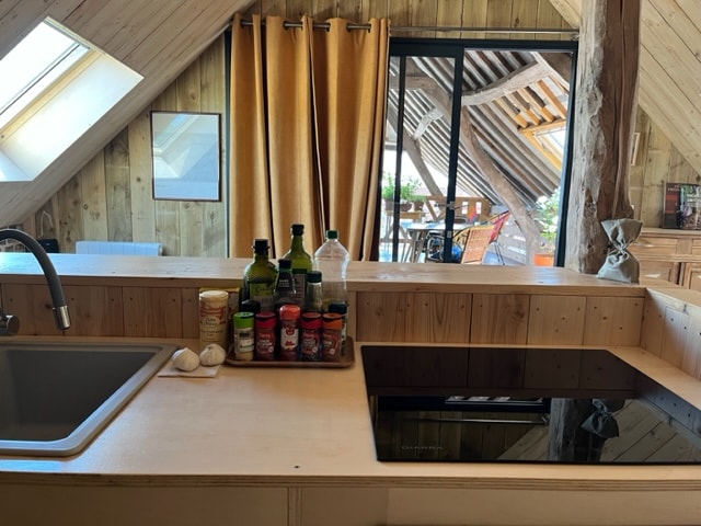 Новий лофт у млині з видом на річку Луар та винятковими краєвидами Двомісне, комфортне помешкання, добре обладнане, нова постіль і меблі Відкрита кухня, дров’яна піч Велика тераса з видом на Лоар Приватний вихід до річки, водозлив Можливість риболовлі, купання, під повну відповідальність орендарів Поблизу є громадська зарядна станція
