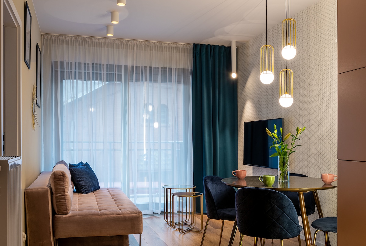 Ексклюзивна, сучасна та функціональна квартира зі спальнею, великою вітальнею з прекрасним видом на Вроцлав. Вона розташована в новому багатоквартирному будинку на 13-му поверсі з власною підземною парковкою та цілодобовою охороною. Повністю обладнана кухня дозволяє готувати домашні страви. Високі стандарти, комфорт, безпека та відчуття приватності дозволяють гостям почуватися як удома. Бездротовий Інтернет і Netflix. Доступ до тренажерного залу, сухої та парової сауни, джакузі та дитячої ігрової кімнати.