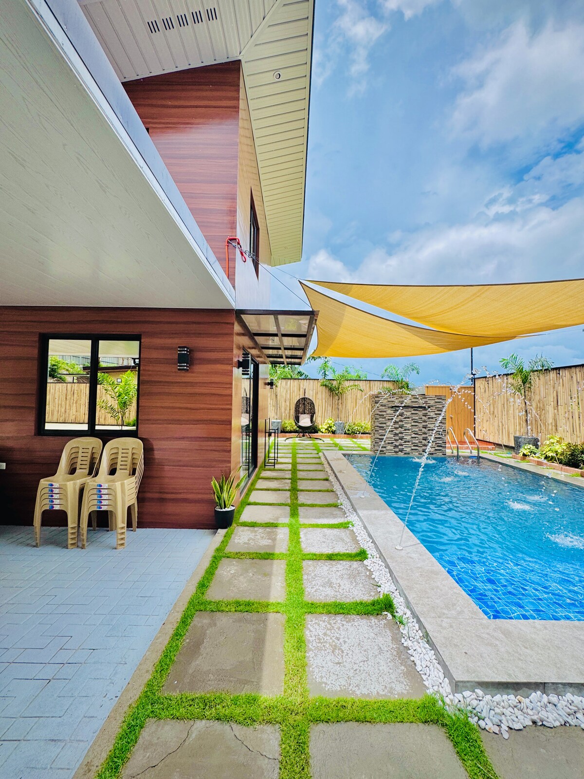 Ваше власне ексклюзивне помешкання з прекрасним садом і повнорозмірним басейном. В ✔️ 15 хвилинах ходьби від Aqua Planet. У ✔️ 8 хвилинах ходьби від SM Clark. У ✔️ 10 хвилинах ходьби від міжнародного аеропорту Кларк. ✔️ Закрита територія з цілодобовою охороною ✔️ Високошвидкісний Інтернет до 75 Мбіт/с ✔️ Смарт-телевізор з БЕЗКОШТОВНИМ NETFLIX ✔️ Міні-бар, кавоварка, холодильник і мікрохвильова піч ✔️ Порохова кімната та душ на відкритому повітрі ✔️ Басейн (4 фути до 8 футів)