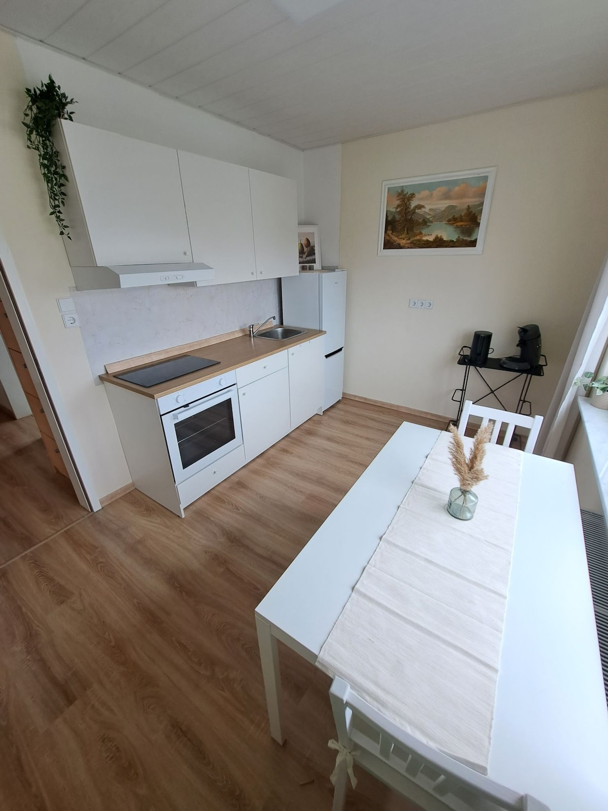 Calm and cosy level-access bedsitter apartment with shower bathroom, separate toilet, fully equipped kitchen, coffee machine, water kettle, microwave, toaster... Supermarket across the road, an ice cream cafe, a pub and a doner kebab shop next door, <100 m to pizzeria, bakery, coiffeur/barber, chemistry. 10 minutes by car to Werrepark, Bad Oeynhausen, various clinics, Aquafun etc. Nice countryside, river Werre within walking distance, river Weser at approx. 5 km, bicycles available for rent.
