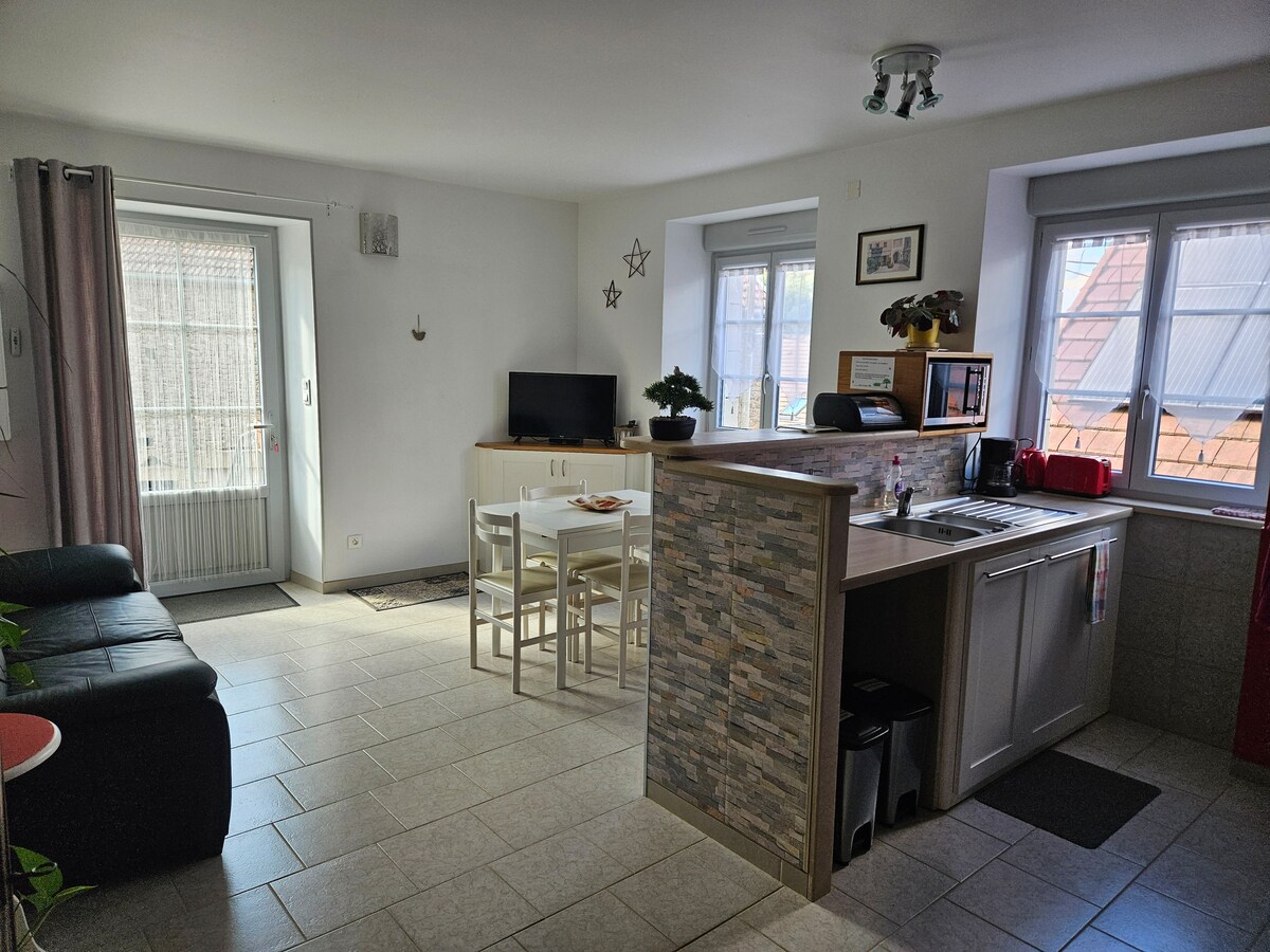 Квартира розташована в Бюссі-ле-Гран, абсолютно нова, з кухнею, відкритою для вітальні з телевізором і диваном, ванною кімнатою з пральною машиною і двома окремими спальнями нагорі. Це помешкання підходить для відпочиваючих, які шукають нові горизонти, але також ідеально підходить для ділових поїздок, а також для тренувань у регіоні.