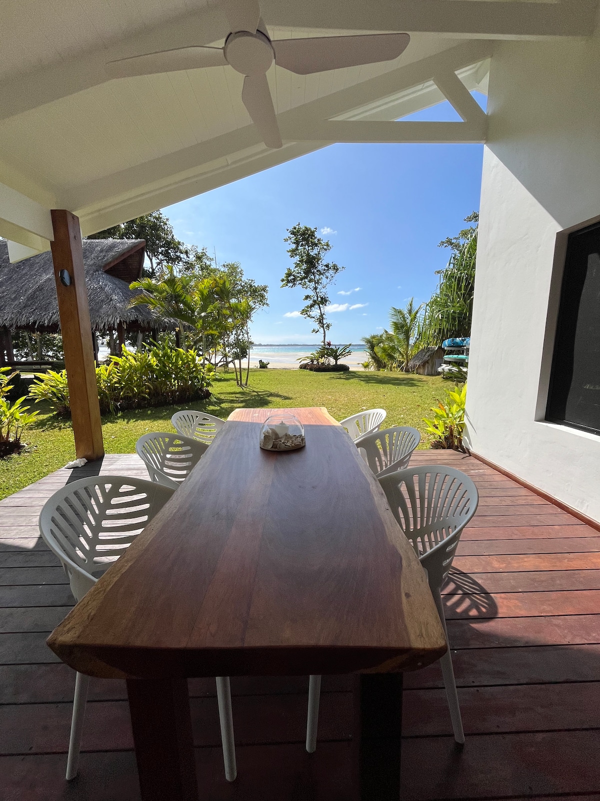 Aore Point Private Retreat вміщує максимум 8 дорослих і є вашим кокосовим оазисом на острові, ідеально розташований навпроти гавані від аеропорту Луганвілла, Еспіриту-Санто, Вануату. Чарівне, еклектичне та комфортне помешкання - ідеальне місце для сімей з дітьми або кількох сімей. Його пряме розташування на березі океану забезпечує величезний вид на воду з великої, вкритої солом 'яною терасою, без видимості сусіда. Виберіть відпочинок, підводне плавання, сноркелінг або пригоди!