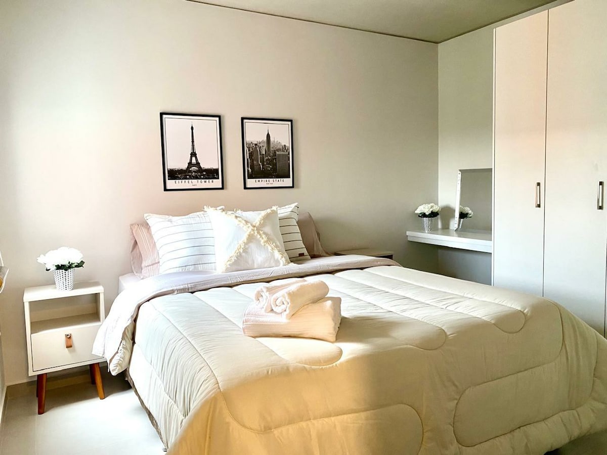 Ідеально підходить для тих, хто подорожує наодинці або в парі, а також для груп з 3 осіб. Відмінне та тихе розташування в найкращому районі Луке, за кілька кроків від Асунсьйона: - 5 хвилин від міжнародного аеропорту імені Сільвіо Петіроссі (ASU) - 100 метрів від готелю Gran Bourbon Asunción та CONMEBOL - 3 хвилини від торгового центру Shopping Plaza Madero - 15 хвилин від корпоративної осі, торгового центру Sun Shopping і Paseo La Galería Басейн, міні-тренувальний зал і балкон. До вартості входять Wi-Fi, Smart TV та цілодобова охорона 🅿️ Парковка в будівлі