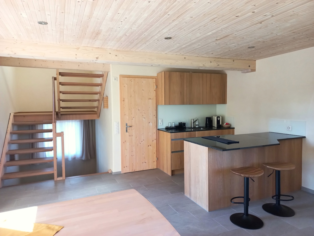 Квартира знаходиться на горищі красивого 500-річного фермерського будинку Аппенцеля, який був повністю відремонтований лише в червні 2020 року. З великою любов 'ю до деталей була створена найсучасніша квартира, яка забезпечує домашню атмосферу зі своєю чарівністю та великою кількістю старого дерева. У квартирі є все необхідне для відпочинку. Кухня добре обладнана. Місце для сидіння з альпійським видом на камінь запрошує вас затриматися. Sönd Wöllkomm! безкоштовно: святкова картка Appenzell від 3 ночей