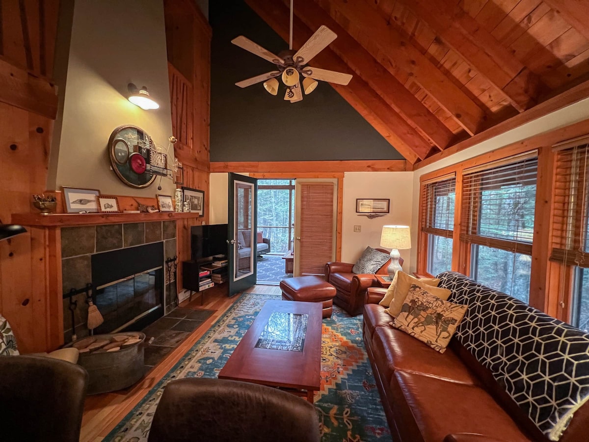 The ultimate escape for the outdoor enthusiast. The Woodland Chalet is surrounded by lush, boreal forest, wildlife, and meandering trails. A full kitchen, single bathroom, and sleeping accommodations for three. The lofted bedroom on the second floor features both a queen bed and a twin trundle, which overlooks the vaulted living room and gas fireplace. Large screened-in porch suitable for lounging and dining day and night.