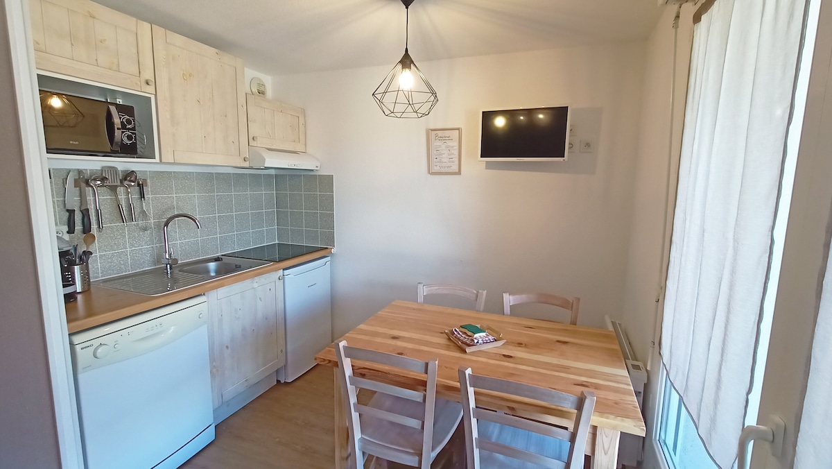 Поруч із центром міста, в резиденції, повністю відремонтованій з якісними послугами, приходьте і відкрийте для себе цю теплу двоповерхову квартиру T2 на 3-му та останньому поверсі з ліфтом, який може вмістити до 4 осіб . Дуже яскравий з прекрасним видом на гори. Вона складається з обладнаної кухні, великої вітальні з розкладним диваном, ванної кімнати з пральною машиною, окремого туалету, нагорі однієї спальні (ліжко 160x200 ), безкоштовного Wi-Fi, 1 кімнати для катання на лижах, парковки.