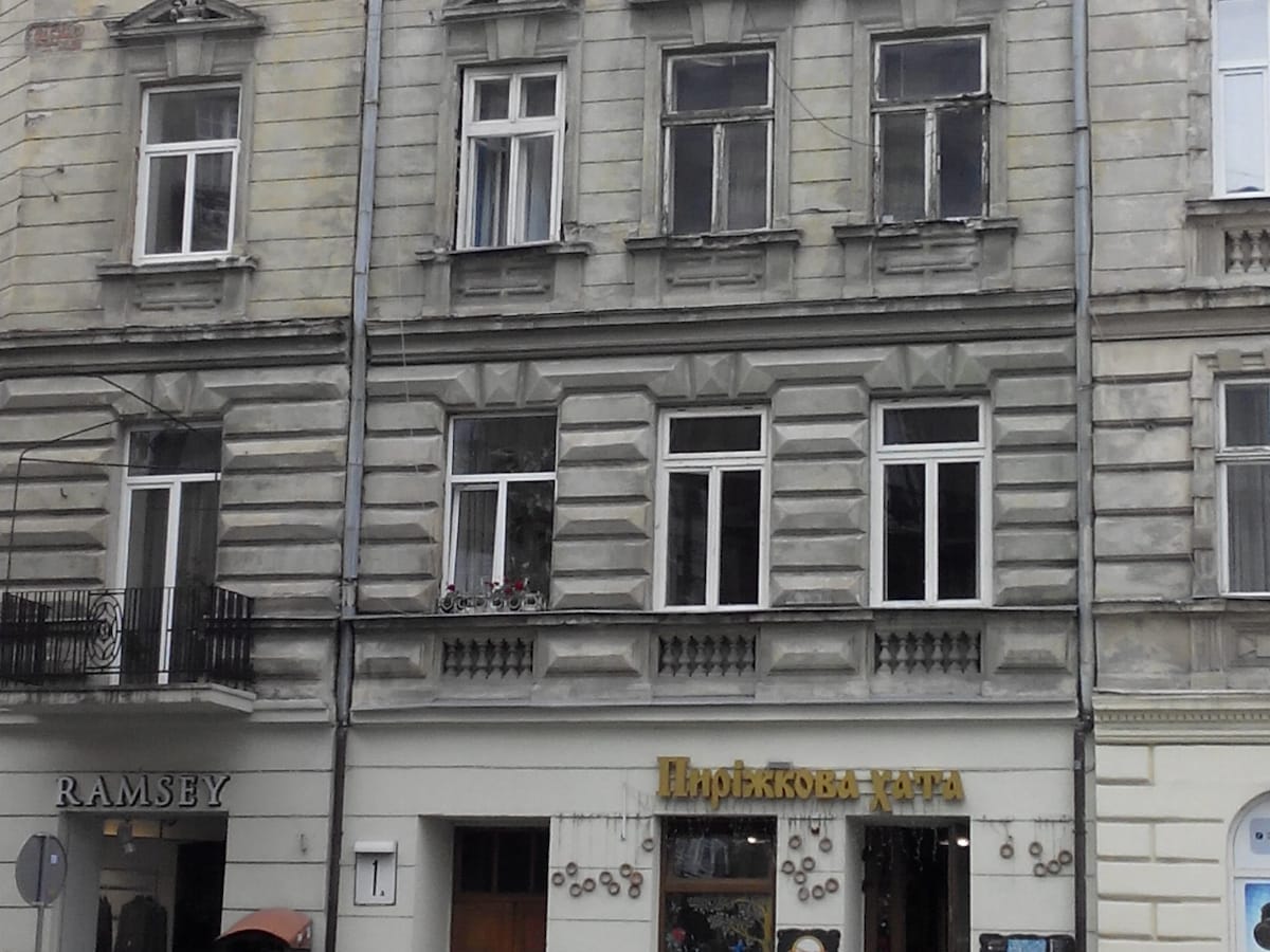 Квартира-студіо знаходиться у безпечному місці на площі Ринок, в самому центрі історичного Львова, навпроти мерії у пішохідній зоні. Квартира (ремонт 2018), розташована на 3-му поверсі 4-поверхового будинку з висотою стелі 3,3 м. Старовинним дому понад 400 років. Будинок занесений до всесвітньої спадщини архітектурних пам'яток ЮНЕСКО. У будинку під'їзд з дерев'яними сходинками, домофон, вхід в під'їзд під відеоспостереженням. Вікна виходять в тихий дворик (шум з площі не буде турбувати вночі).