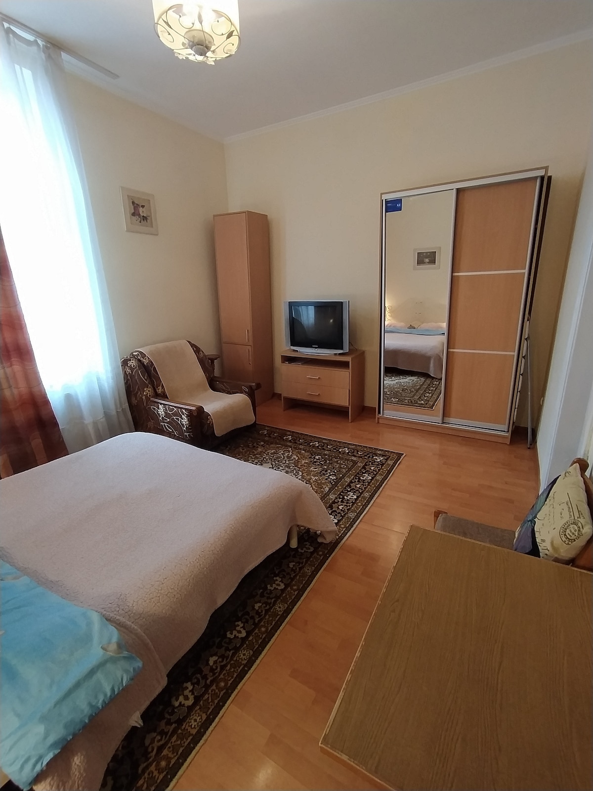Квартира з 1 спальнею в центрі Львова , недалеко від усіх історичних пам 'яток , кафе , магазинів, ресторанів . 2 хвилини пішки до оперного театру, 1 хвилина до Університету ім. І .Франка . Ідеальна квартира для перебування двох осіб .