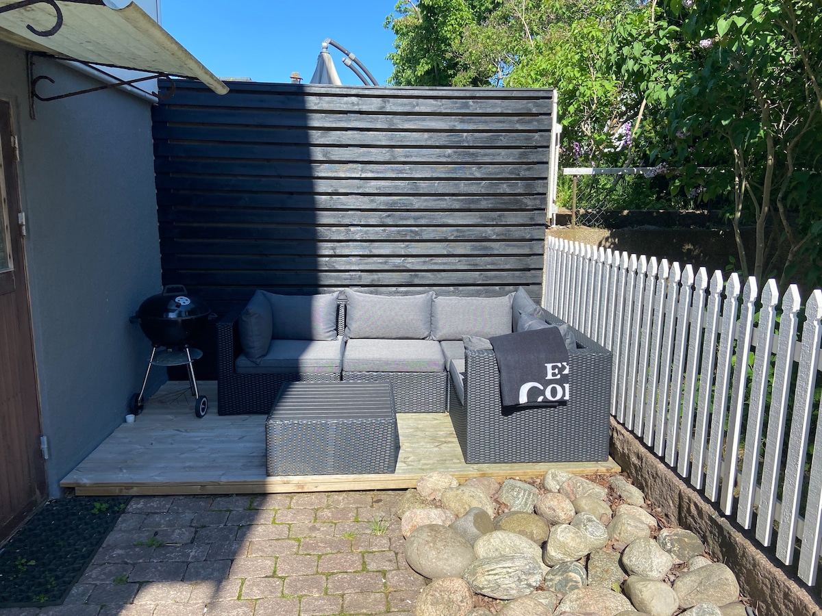 Невелика квартира площею 19 кв. м, близькість як до лісу, так і до моря. Поруч із гарними пішохідними доріжками, купанням і великою кількістю грибів восени :) У квартирі є фантастичне патіо, де можна приготувати барбекю та насолодитися сонцем. Близько 10 км до центру Лисекіля. Сауна на відкритому повітрі доступна для використання в сусідньому будинку. У ньому є пральна машина, посудомийна машина, кондиціонер і комбінована мікро/духовка. Можливість розмістити 2 дорослих і 2 дітей. Трохи тісно, але він працює. Примітка. Всього в 2 метрах від висоти стелі в центрізі.