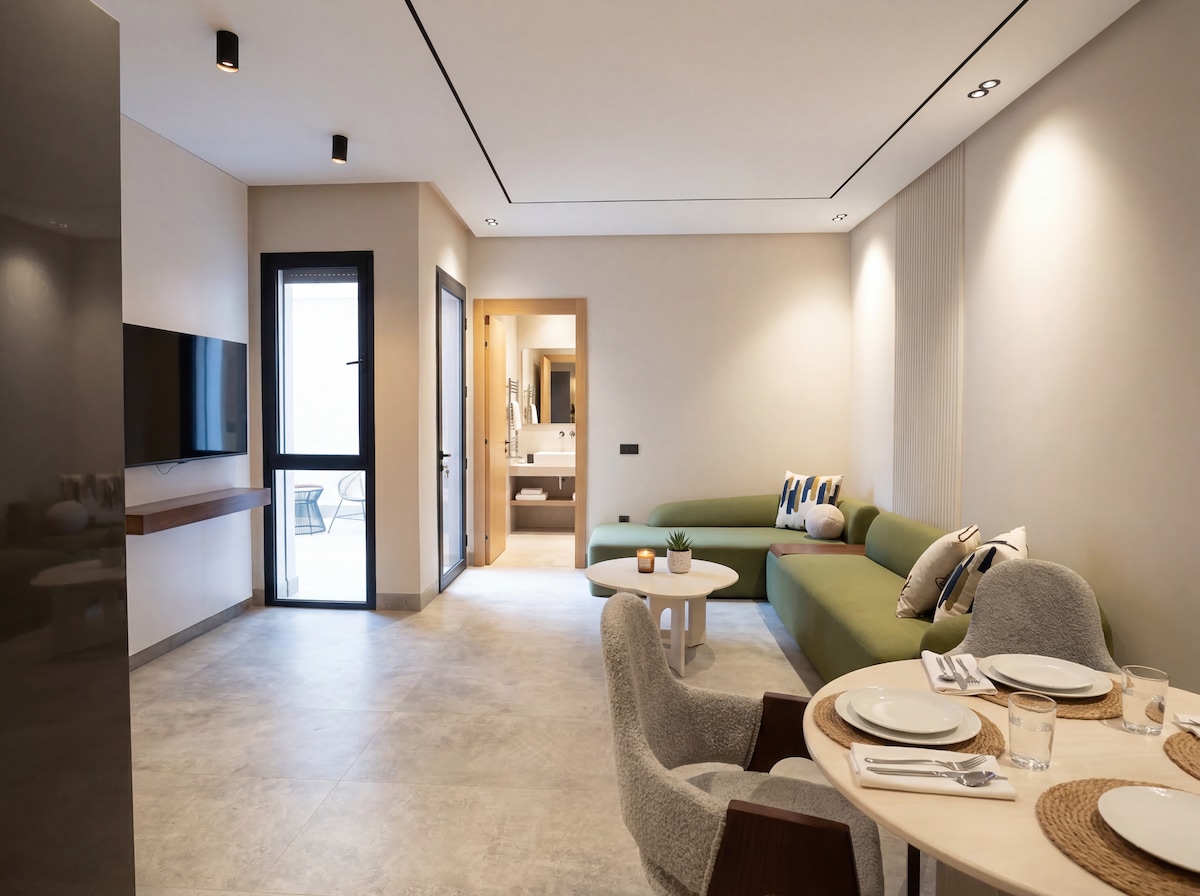 Perla 403💎, гавань спокою, де елегантність сучасної резиденції поєднується з комфортом 5* готелів у центрі Касабланки! Відпочиньте в просторій вітальні з сучасним дизайном, обладнаній 55-дюймовим смарт-телевізором з Netflix та IPTV для абсолютного відпочинку ввечері. Кімната, справжнє затишне гніздо, обіцяє спокійні та відновлювальні ночі ☁️ З власного балкона спостерігайте за чудовими закатами над містом, роблячи кожну мить вашого перебування незабутнім! ✨