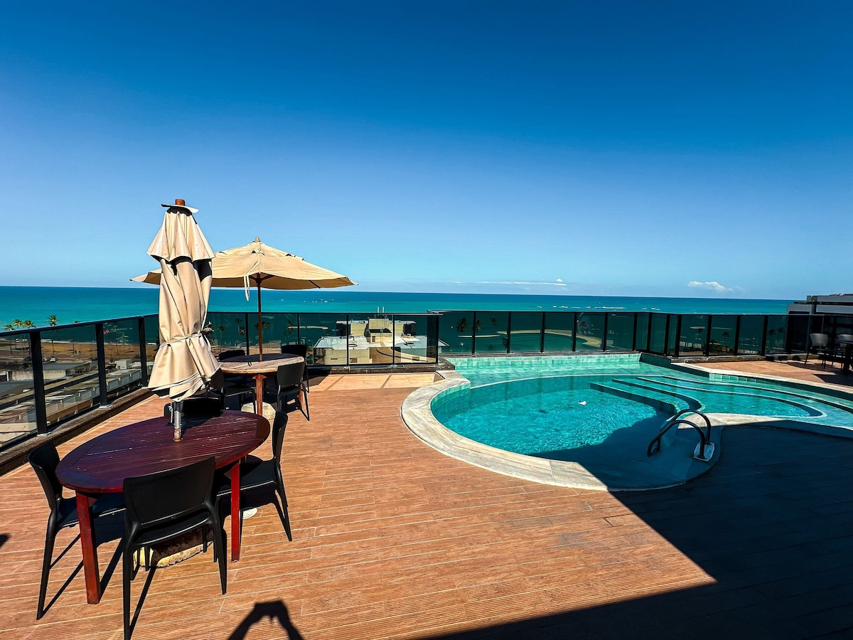 Apartamento frente mar , na belíssima praia de Jatiúca, não precisa atravessar rua para estar no mar. Uma vista incomparável, tanto da sala quanto dos quartos. O edifício é do hotel Jatiuca suítes , que fica dentro de um resort cinco estrelas Jatiuca hotel e Resort, no qual nossos hospedes podem aderir ao day use(R$60,70) e usufruir de todas às áreas de lazer, piscinas aquecida, com hidro, jacuzzi ,sauna , playground, recreação adulta e infantil até às 21h ,academia, quadras , serviço praia