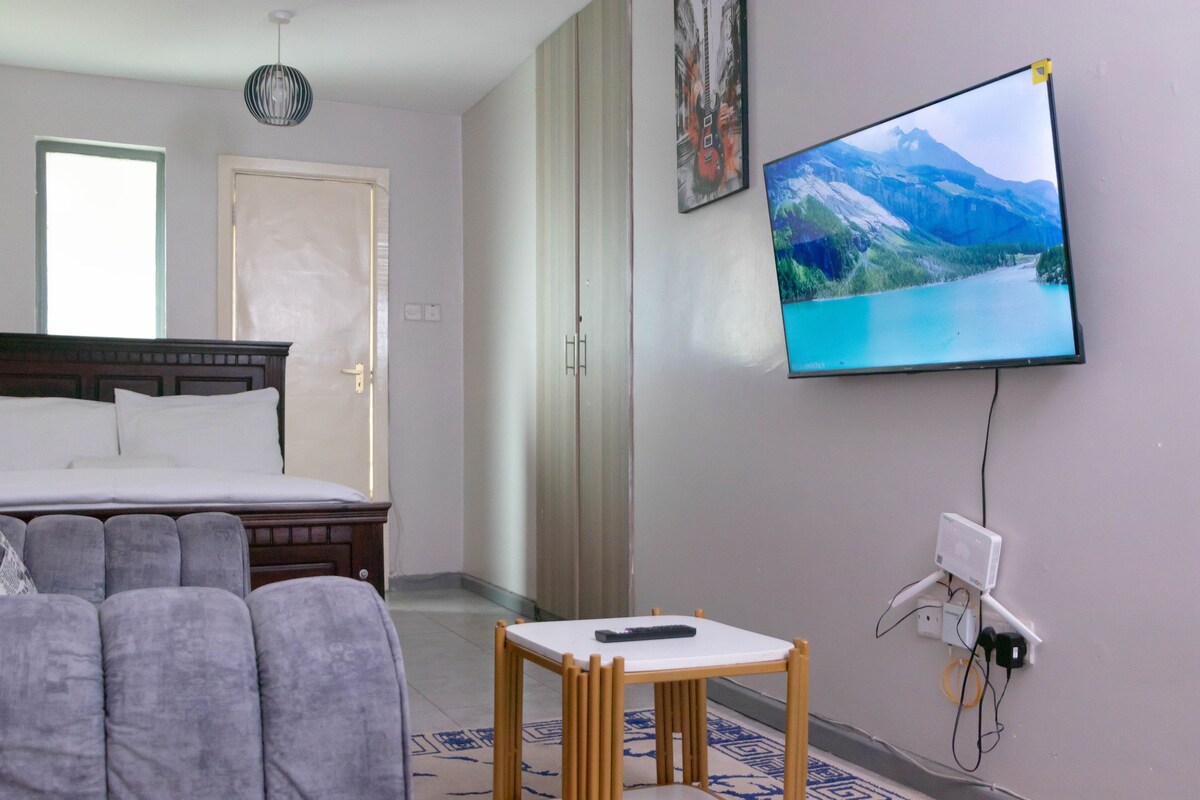 Спокійна та красиво мебльована квартира з 1 спальнею чекає на вас у Феді, пропонуючи унікальне помешкання неподалік від JKIA та центрального делового району Найробі. Апартаменти з такими торговими центрами, як Southfield, Imaara та Gateway, мають безкоштовний високошвидкісний Інтернет, який обслуговує як для відпочинку, так і для бізнес-мандрівників. Ми прагнемо створити для вас незабутнє перебування! Відкрийте для себе зону на даху з чудовим видом на район.
