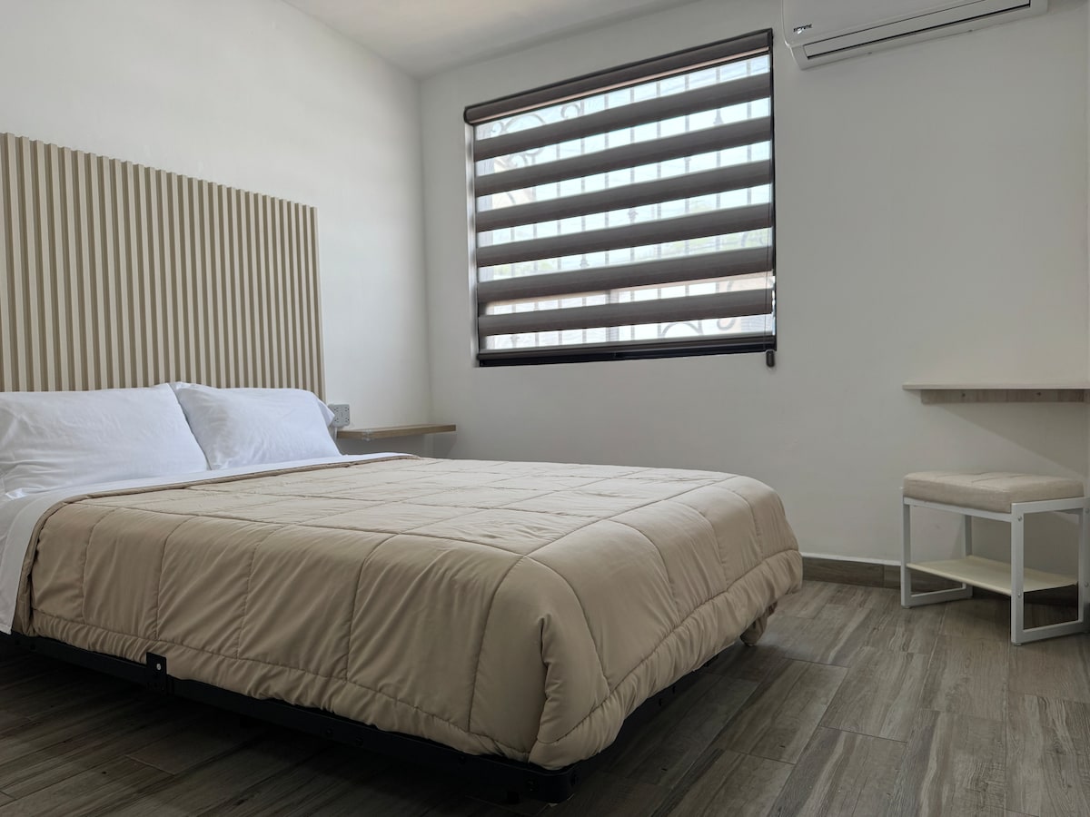 Насолоджуйтеся приватною, затишною та функціональною кімнатою в тихому, безпечному районі. 🏡 📍 Всього в 10 хвилинах від TEC, стадіону Banorte, Fundidora та центру міста. 🛏️ Двоспальне ліжко з окремою ванною кімнатою ❄️ Кондиціонер з гарячою та холодною водою 🖥️ 32-дюймовий телевізор Smart TV 💻 Робочий стіл 🍳 Електрична плита, мікрохвильова піч, міні-холодильник і посуд 🍽️ Обідній стіл 🚪 Окремий вхід (1-й поверх) 🧴 Рушники, шампунь та мило включені