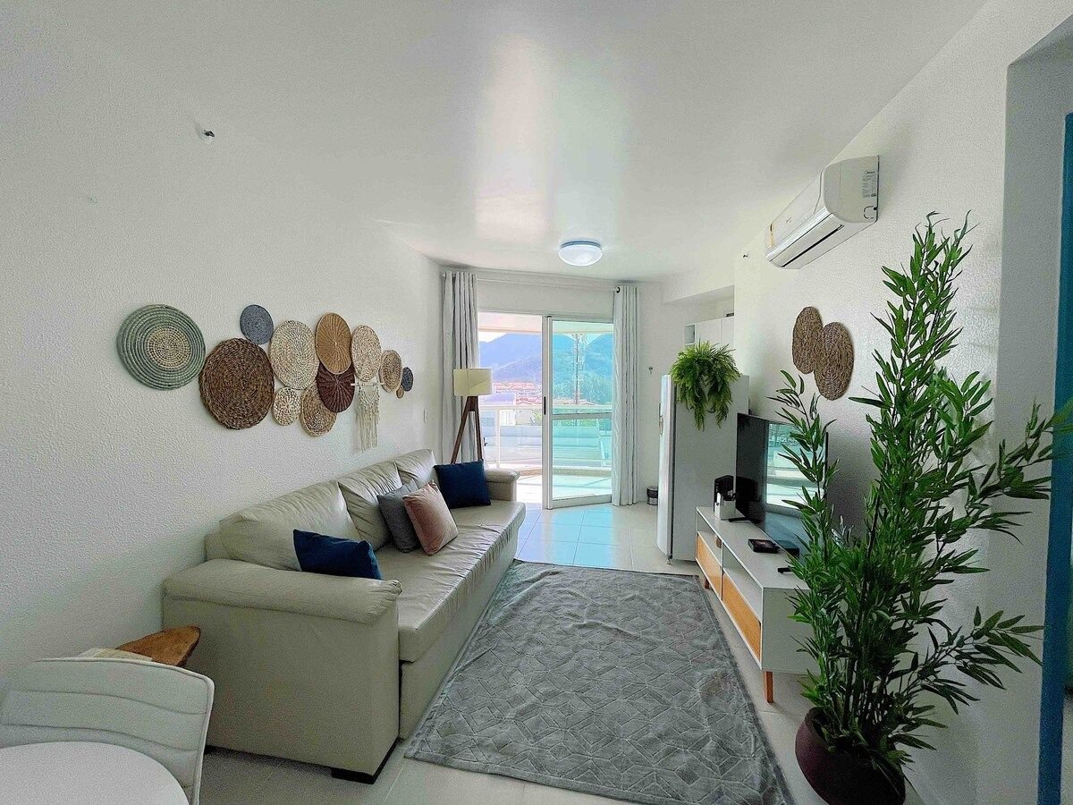 Квартира з 1 спальнею в житловому приміщенні на краю Прайя-ду-Понталь в Рекрейу-дус-Бандейрантес, з кондиціонером у вітальні та спальні. З курортною інфраструктурою, видом на Понтал-роуд, помешканням для 4 осіб, 1 двоспальним ліжком та 1 двоспальним ліжком у вітальні, високошвидкісним Wi-Fi. СМАРТ-ТЕЛЕВІЗОР у вітальні та спальні Має прямий доступ до пляжу, басейну з підігрівом, відкритого басейну. Платний ресторан окремо, де подають сніданок, обід і вечерю. Їжа оплачується за кілограм.