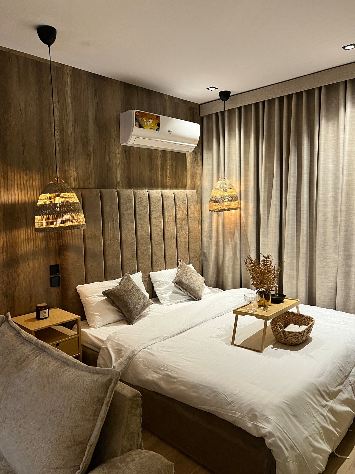 Оригінальна квартира з сучасним дизайном, найновішими дизайнами та найкращим комфортом. Ми дуже дбаємо про клієнта з точки зору щоденної чистоти та стерилізації, професійного обслуговування клієнтів (ми пишаємося оцінкою наших клієнтів Алалі Ліна) Містить: Двоспальне ліжко розміру King size та зручне односпальне ліжко. Кухня – мікрохвильова піч – холодильник – чайник – пральна машина Туалет. Охайний дизайн і комфортне помешкання. Швидкість Інтернету 250 Мбіт/с Самостійний вхід Парковка Життєво важливе розташування неподалік від ресторанів, торгових центрів Мечеть Пророка🕌: 5-7 хвилин🚗 Аеропорт✈️ : 11 хвилин 🚗 Поїзд Haramein🚆: 7 хвилин 🚗 Цілодобове обслуговування для ідеального і спокійного перебування.