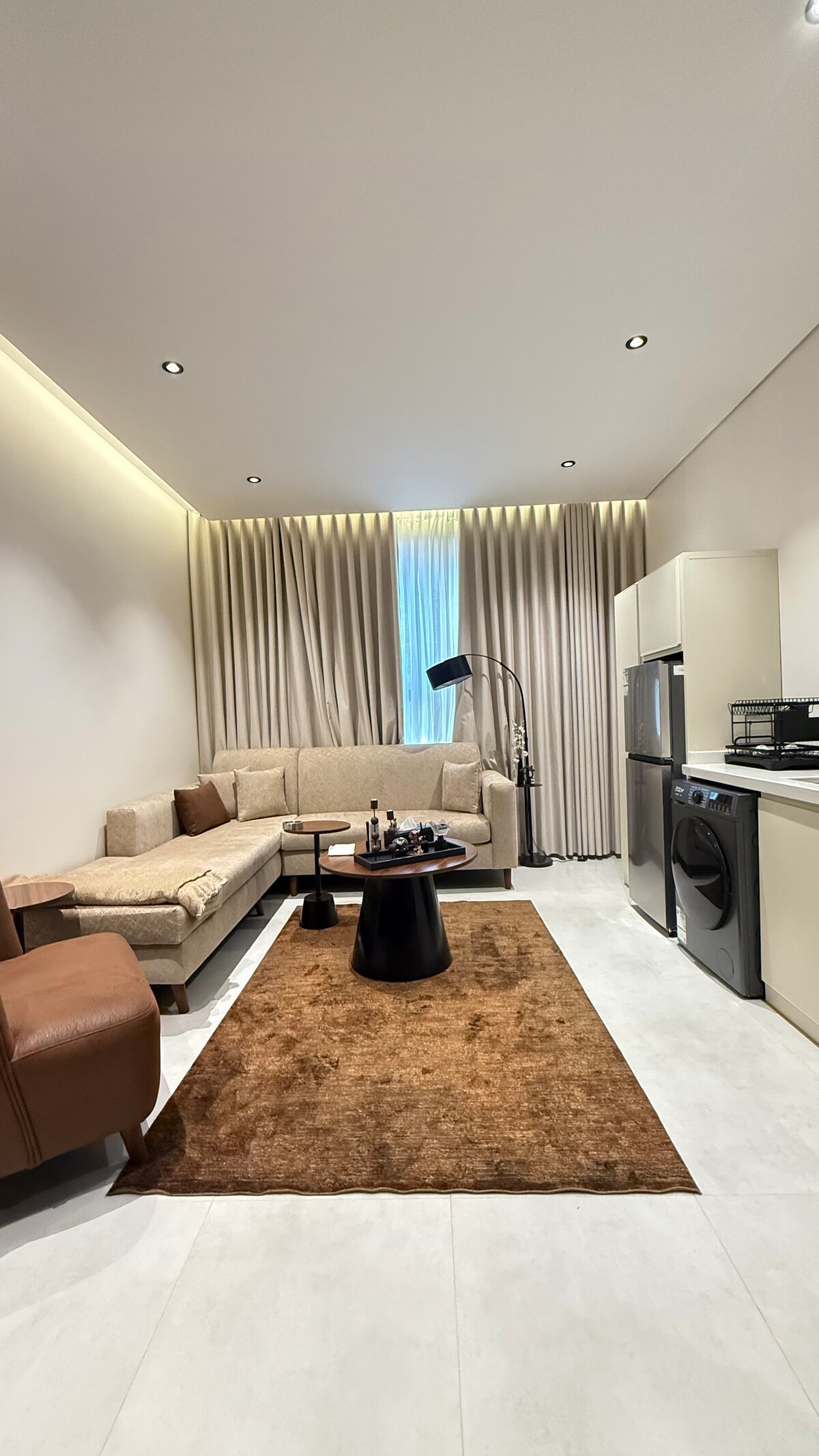 5. Готельні апартаменти в Медіні Кімната, вітальня, кухня та ванна кімната