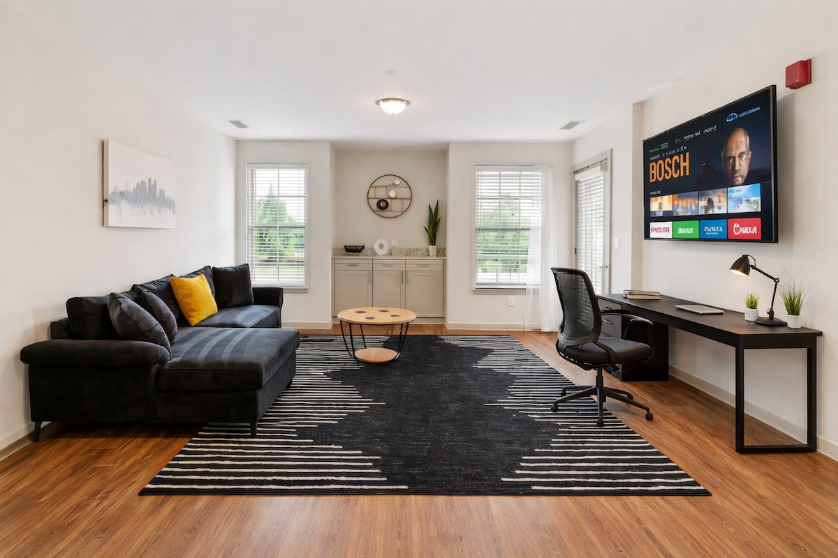 Насолоджуйтеся стильними враженнями в цьому помешканні, розташованому в центрі міста. Відпочиньте, відновіть сили та насолодіться преміальними помешканнями в Outfield Oasis, сучасних апартаментах з однією спальнею, розташованих у Ballpark Apartments у Town Madison – ідеальне місце для подорожуючих медсестер, інженерів або відвідувачів Хантсвілла. Ця центральна квартира, розташована в декількох кроках від стадіону Toyota Field, пропонує стильний комфорт із зручностями курортного стилю, доступом до ліфта та близькістю до ресторанів, розваг та природи.