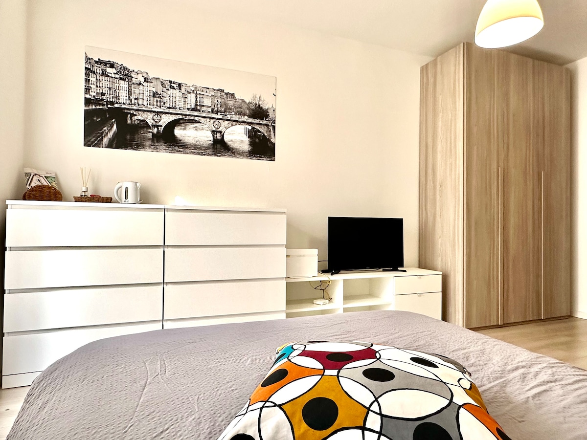 Зручна та тиха квартира площею 70 м2, відремонтована та мебльована з старовинними та сучасними елементами, в 5 хвилинах ходьби від Музи та в 10-15 хвилинах ходьби від центру! Повна кухня з мікрохвильовою піччю, посудомийною машиною, кавоваркою або американською кавою. Диван-ліжко з дерев 'яними рейками. Netflix безкоштовно. Кондиціонер у спальні Туристичний податок враховується в ціні. Закритий задній двір з безкоштовною стоянкою.