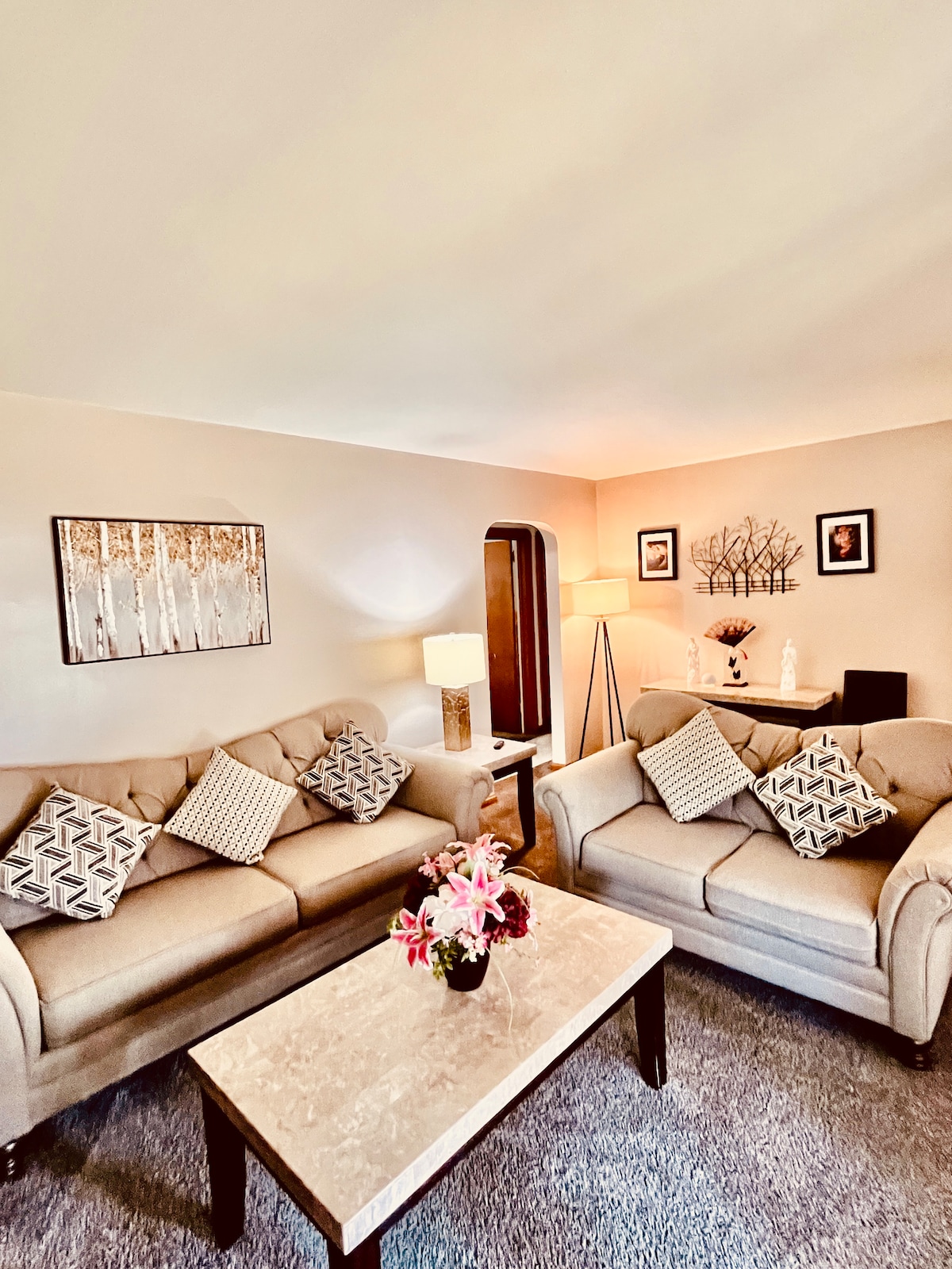 Ласкаво просимо до цього стильного та добре обладнаного помешкання з 2 спальнями та 1 ванною кімнатою, призначеного для максимального комфорту та відпочинку. Це помешкання з розкішними двоспальними ліжками з пам 'яттю, смарт-телевізорами в кожній кімнаті, повністю укомплектованою кухнею та просторою вітальнею з масивним 70-дюймовим телевізором. Це помешкання ідеально підходить для мандрівників, які шукають затишок і зручності. Насолоджуйтеся додатковими перевагами суміжного гаража, пральної та сушильної машин, а також обідньою зоною на шість місць.