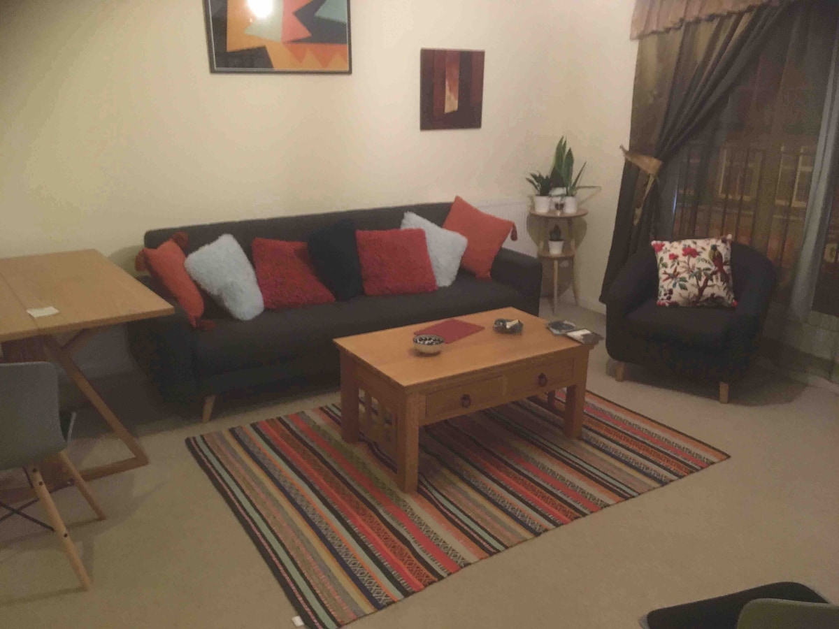Помешкання складається з спальні з двоспальною кімнатою з французькими дверима, що відчиняються у гарний великий сад. У помешканні є повністю обладнана кухня та невелика ванна кімната з душовою кабіною. Широкосмуговий доступ, телевізор, холодильник, пральна машина та сушильна машина включені в вартість. Воно знаходиться приблизно в 50 ярдах від станції Егем, з якої звичайні поїзди до Лондона, подорож займає близько 40 хвилин. Поїзд йде до вокзалу Ватерлоо, який знаходиться дуже близько до Лондонського ока та Вестмінстера, з Букінгемським палацом, парком Святого Джеймса, Трафальгарською площею, що знаходиться на відстані короткої прогулянки. Аеропорт Хітроу знаходиться в 5 або 6 милях. Егам - невелике містечко, але воно має певний історичний інтерес у тому, що в 1215 році була підписана на Раннімеді вниз по дорозі біля річки. Недалеко знаходиться Віндзорський замок та Ітон (де принці Вільям і Гаррі, а Девід Кемерон ходили до школи). Навколо також є чудова сільська місцевість і чудові прогулянки.