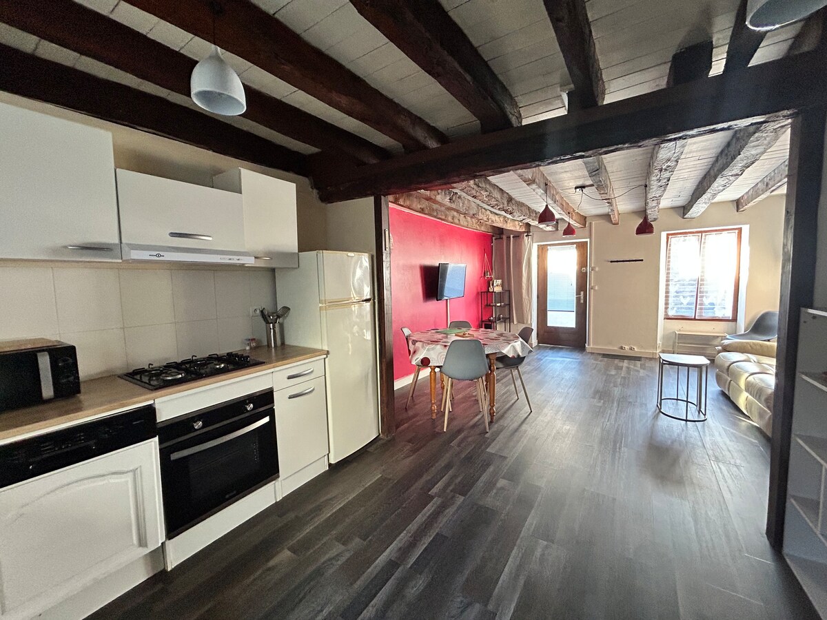Насолоджуйтеся цією чарівною нещодавно відремонтованою квартирою, розташованою на другому поверсі одного з найстаріших будівель міста. Простора квартира має 3 спальні та велику вітальню, прикрашена предметами, привезеними з наших подорожей. Завдяки центральному розташуванню ви можете прогулятися до всіх зручностей (станція sncf, магазини, ресторани, бари тощо). Гості можуть припаркувати свій автомобіль на одній з безкоштовних парковок міста поблизу об 'єкта нерухомості (менше 100 метрів).