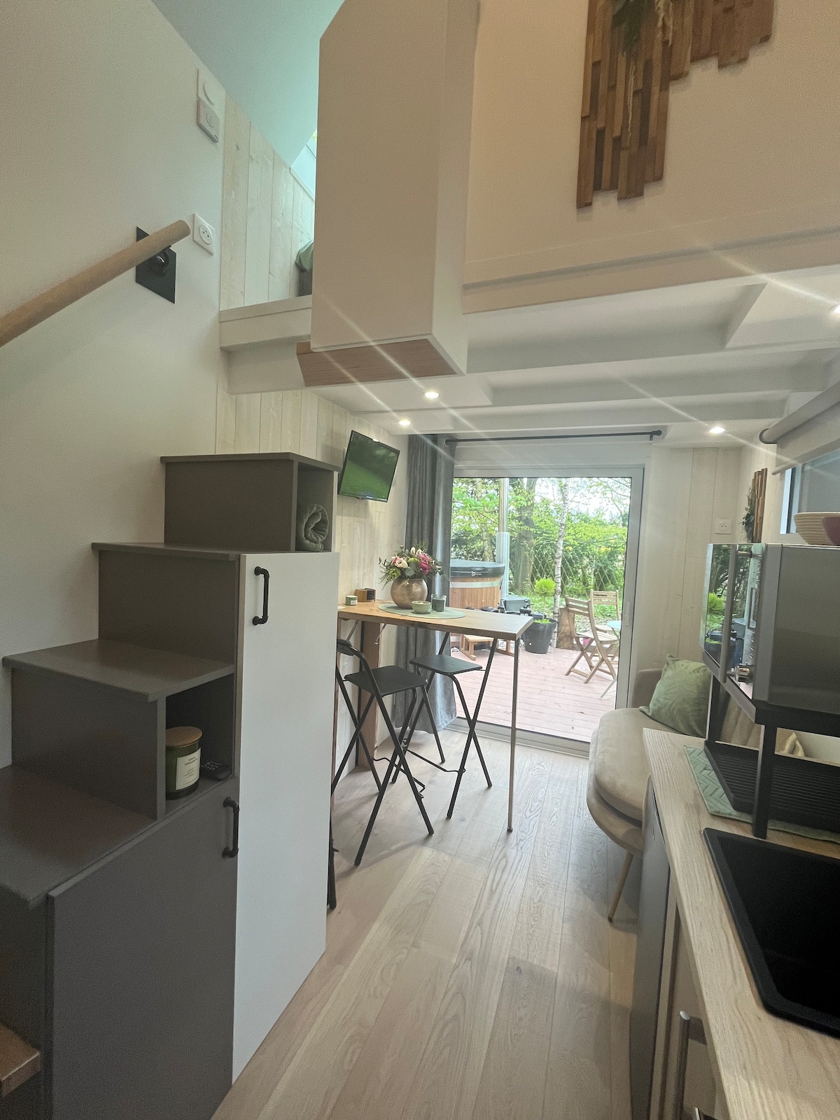 Відпочиньте в цьому спокійному та стильному будиночку з приватною необмеженою гідромасажною ванною. Насолоджуйтеся парком площею 20 га з мостами XVIII століття та його печерою і перетинайте лебедів або наших друзів, ослів Мартіна та Вікі ... Будиночок обладнаний, але ми можемо принести вам сніданок у кошику на терасі або їжу в холодильнику, щоб вам потрібно було лише розігрітися і насолодитися:) Глазур на торті: насолоджуйтеся круглим ліжком 2,30 м і 2 односпальними ліжками нагорі. (30 € на +/чол більше 2 осіб)
