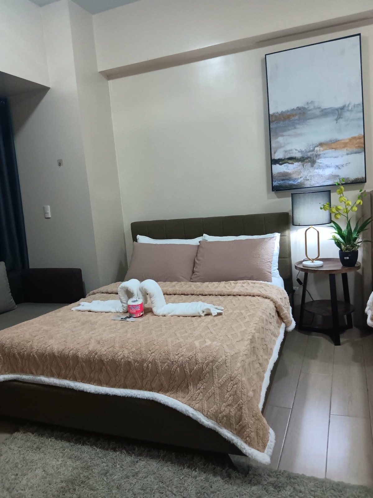 Ласкаво просимо до нашого скромного простору. Насолоджуйтеся міським життям у Центральному діловому районі Макаті, де в одному кроці знаходяться численні ресторани, магазини та бари. Наш апартамент знаходиться на 41-й площі, з однією спальнею площею 28 кв. м з балконом, який добре обладнаний для короткострокового та довгострокового перебування. Знижка за тиждень і місяць застосовується автоматично.