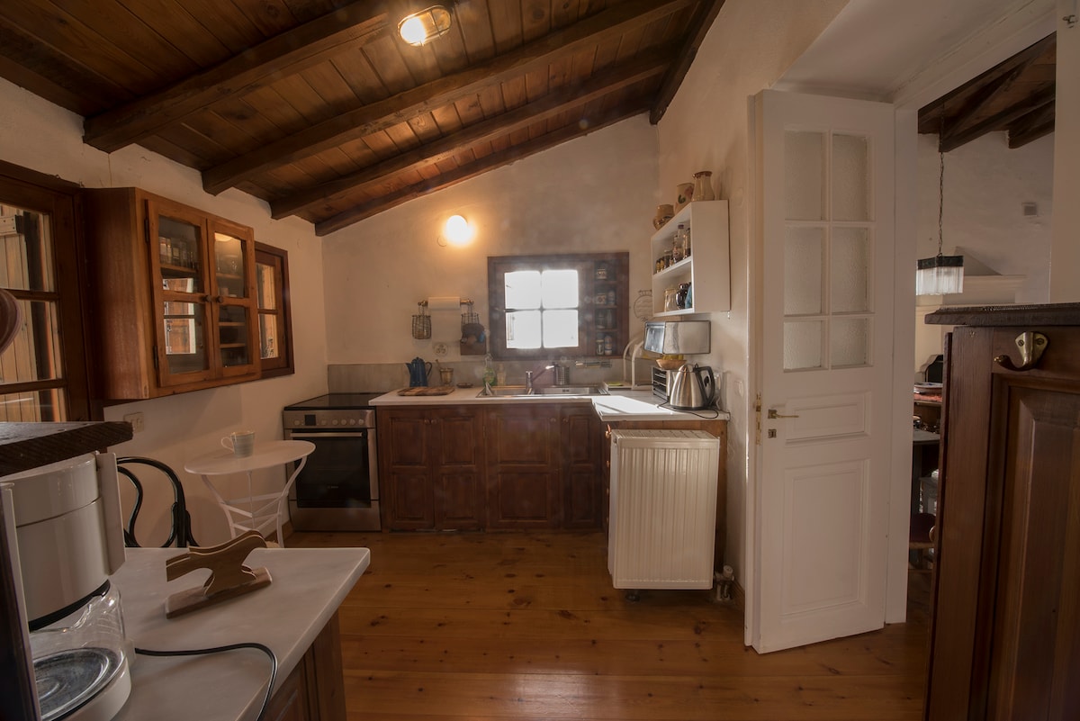 * New mattresses 2025! * Renovated old stone two-level house in a plot with astonishing view to aegean sea located in the highest part of the traditional village Zagora. Great choice for families, group of friends or couples seeking peacefulness and comfort for their vacation; either summer or winter.