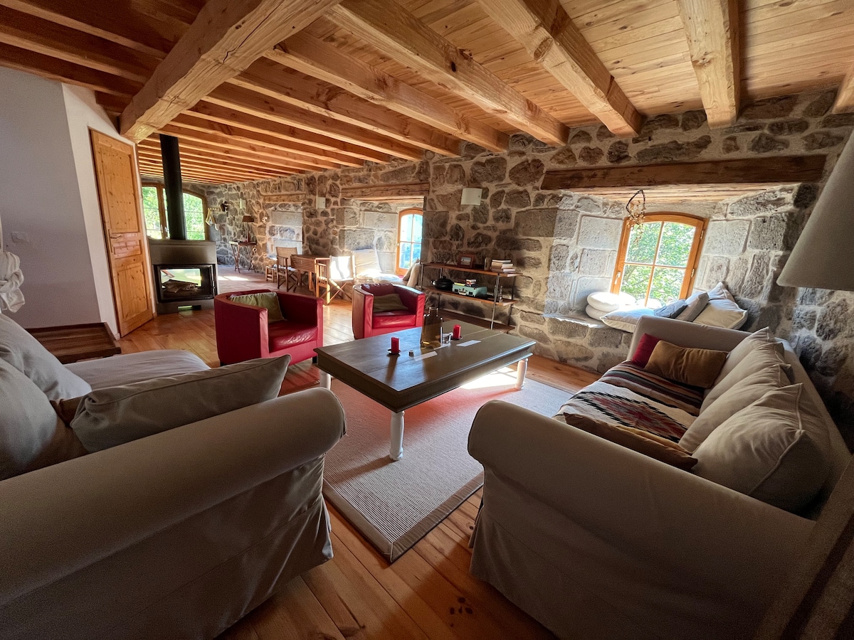 Maison en pierre typique dans un hameau montagnard au coeur des monts du Cantal. Partez randonner vers les plus beaux sentiers du massif ou dévalez les pentes de la station de ski du Lioran toute proche. Le village des Chazes est perché à 1200M d'altitude, face au Plomb du Cantal et juste sous le Puy Griou. Pour les amoureux de nature et de grands espaces, c'est le lieu idéal comme point de départ pour profiter de la montagne.