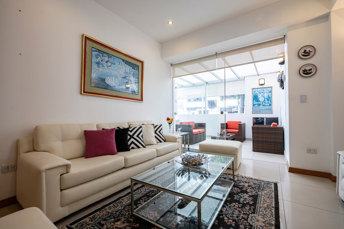 Ласкаво просимо до притулку вашої мрії в Мірафлоресі, чарівному куточку Ліми, який зачарує ваші почуття з першої миті. Запрошуємо вас зануритися в шарм цієї унікальної квартири, призначеної для того, щоб загорнутися в теплих і емоційних обіймах. Ідеальне розташування, один квартал від Малекон-де-ла-Резерва; дуже близько до пляжу, Ларкомара та інших місць!