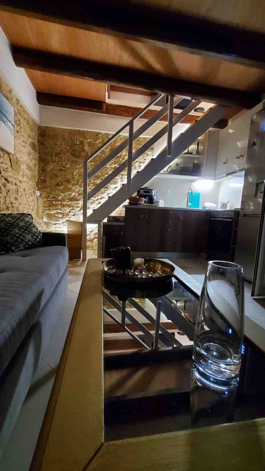 Відкрийте для себе спокій у нашій чарівній студії в Малеме, Крит. З цього помешкання на першому поверсі відкривається приголомшливий панорамний вид на море та сучасна, повністю обладнана кухня. Це ідеальна база для ознайомлення з регіоном, що знаходиться в декількох хвилинах ходьби від пляжу. Ідеально підходить для пар і цифрових кочівників, наша затишна студія має красиву дерев 'яну піч для цілорічного комфорту. Можна перебувати з домашніми тваринами з достатньою прибудинковою територією, вона оточена тихими оливковими деревами, що забезпечує спокійну та тиху обстановку.