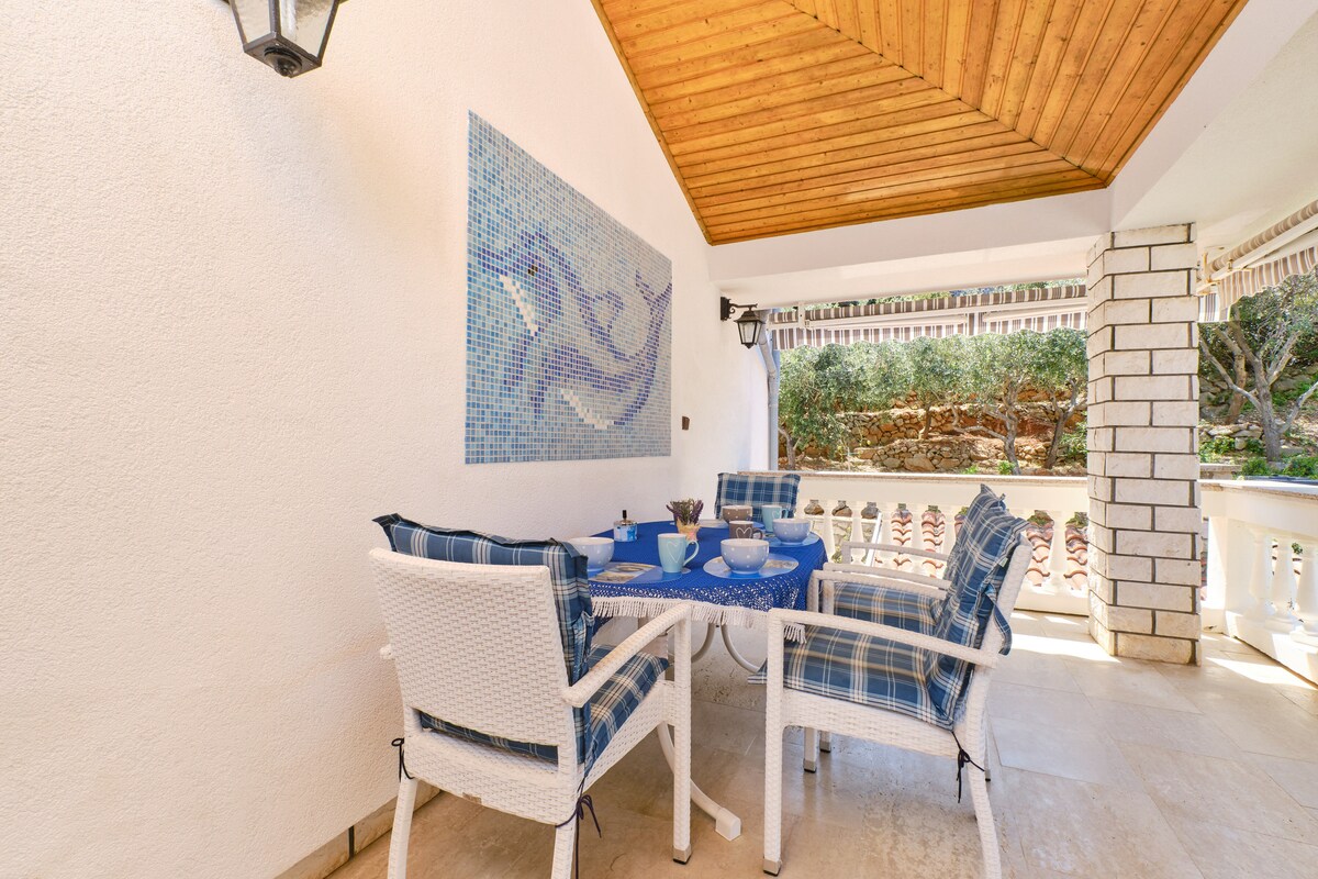 U okviru obiteljske kuće nudimo dva apartmana.U velikom apartmanu koji se nalazi na drugom katu obiteljske kuće nudimo smještaj za osam osoba. Sve sobe imaju zaseban balkon s kojeg se pruža jedinstven pogled na luku Malog Lošinja. U sklopu apartmana nalazi se i prostrana terasa koja pruža mogućnost mirnog doručka ili večere na otvorenom prostoru. Manji apartman nalazi se u prizemlju obiteljske kuće i pruža smještaj za četiri osobe. Kuća je u blizini centra ,a do uređene plaže je pet minuta hoda.