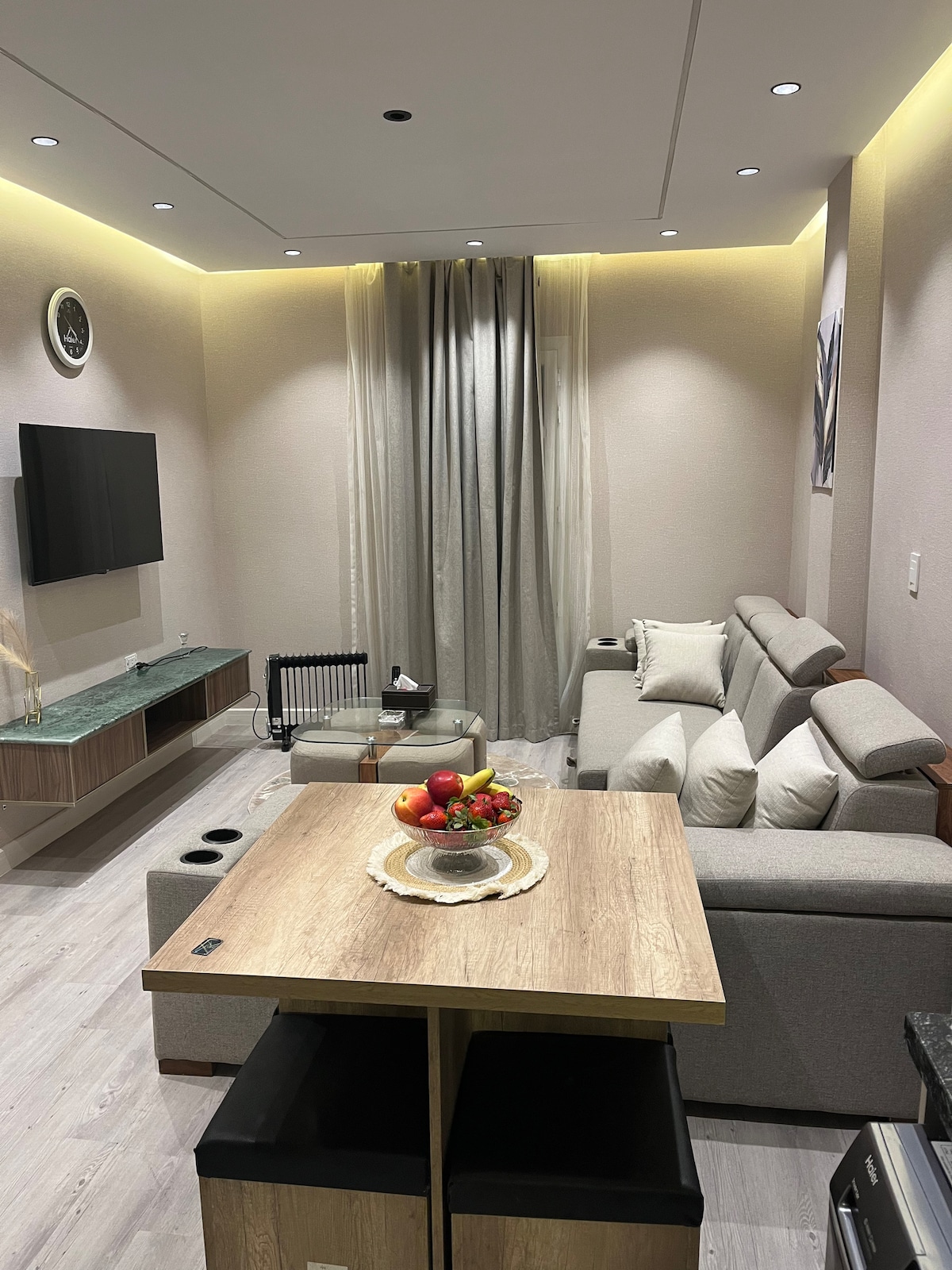 Luxuriate in a hotel-style stay at this luxurious smart apartment in Sheikh Zayed. Enjoy two elegant master suites with private bathrooms, a third room with a sofa bed, private jacuzzi, 65” Smart TV, sound system, smart lighting, central A/C, and keyless entry. Located in a quiet, upscale area near restaurants, malls, and hospitals. Perfect for families, youth, and business travelers seeking privacy, luxury, comfort, and a premium experience.