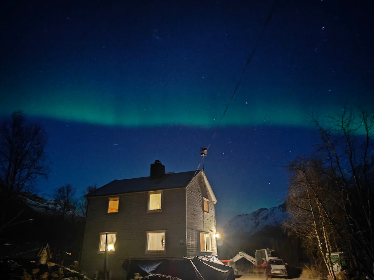 Ідеально підходить для спостереження за північним сяйвом: сухий клімат створює невеликі хмари, разом із дуже низьким світловим забрудненням. Старий ностальгічний будинок. Три спальні, ванна кімната, кухня, вітальня, загальна 90 м2. Це 10 ліжок, але місткість ванної кімнати вказує на те, що це максимум 8 гостей. Тихий і спокійний район з дивовижними природними пейзажами в розслаблюючій атмосфері. Заходи: піші прогулянки, катання на лижах, їзда на велосипеді, каякінг, риболовля в морі/річці, опівнічне сонце. Скіботн - невелике селище: 560 жителів.