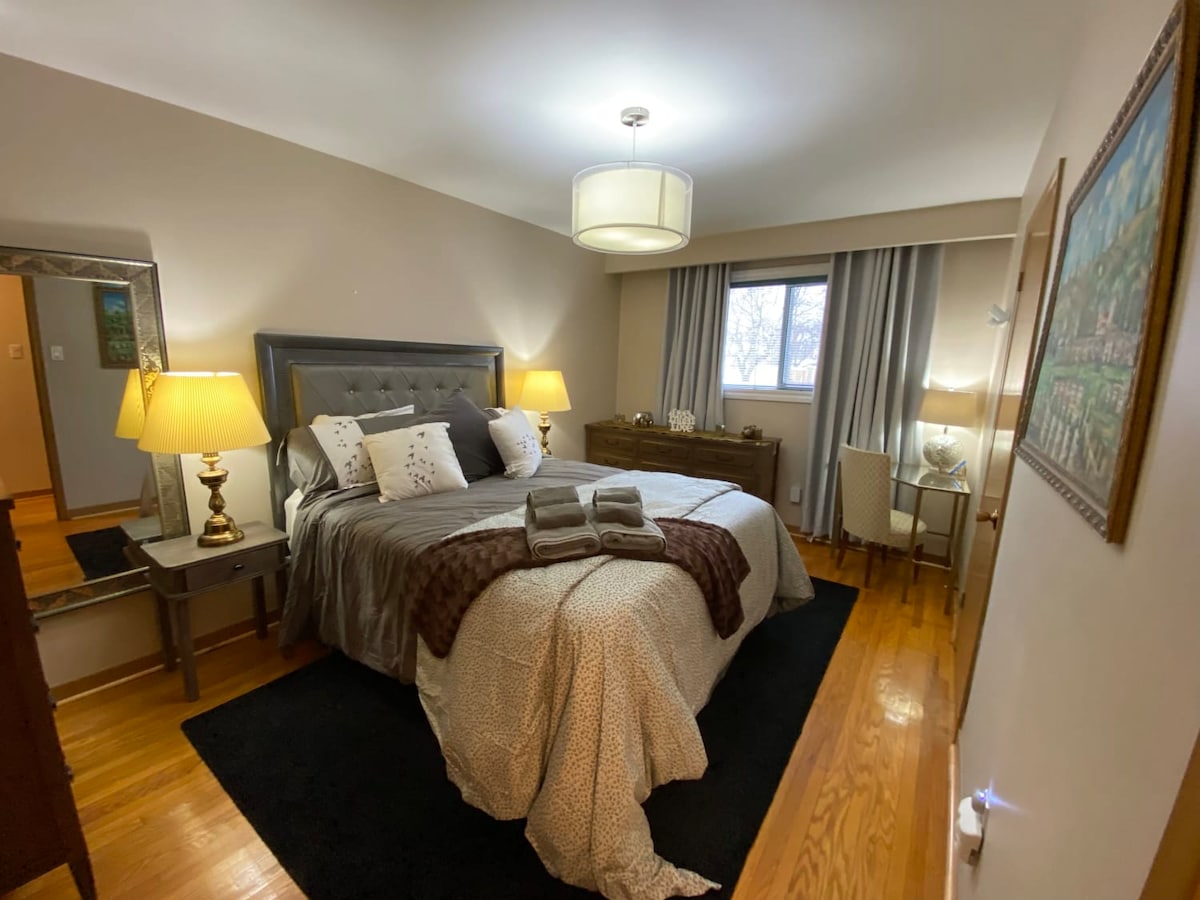 Середня оцінка: 4,77 з 5, відгуки: 47Помешкання з 3 спальнями та 2 ванними кімнатами | Поруч з аеропортом YYZ, 7 хвилин