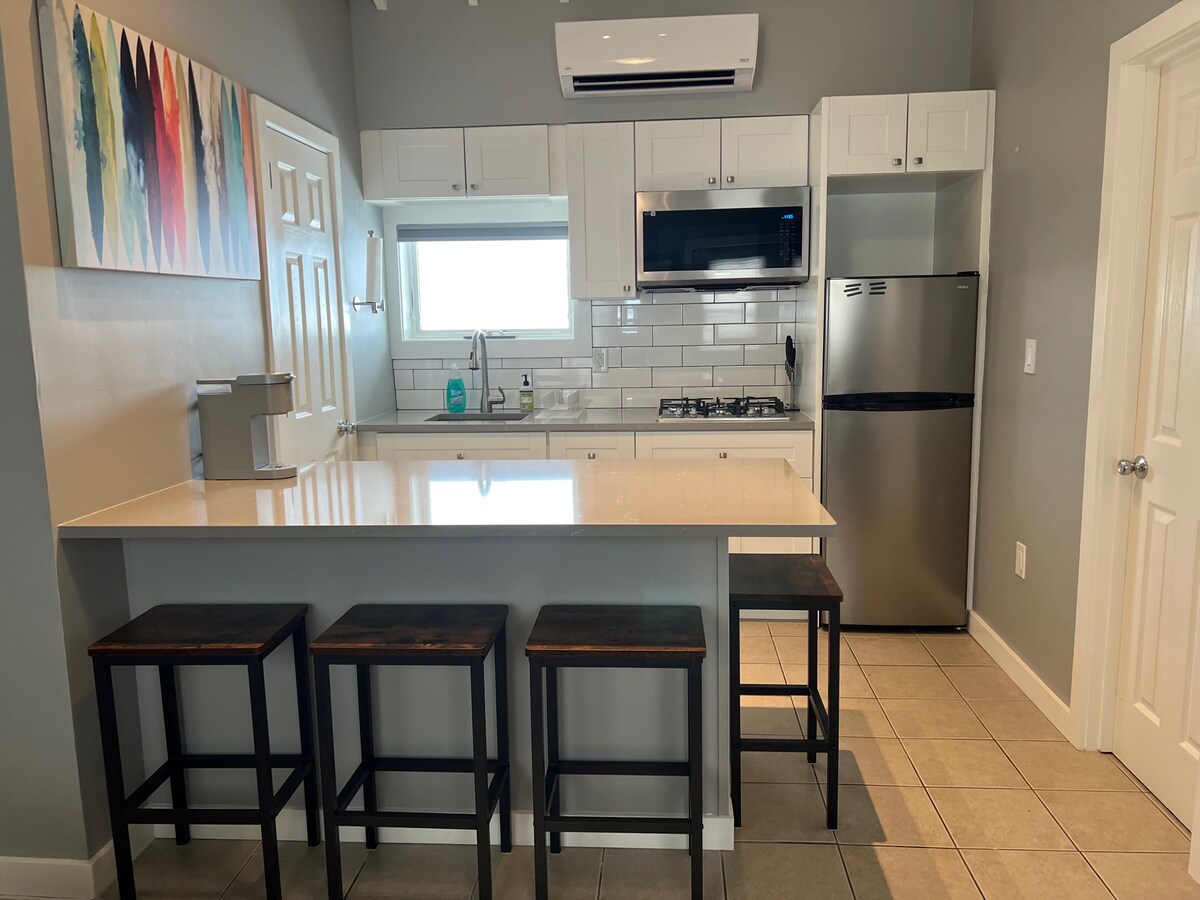 Насолоджуйтеся здоровим солоним повітрям! Пляж, набережна — 10 хвилин пішки. Чудова квартира з 2 спальнями/1 ванною кімнатою на 1-му поверсі двоквартирного будинку. 2 паркувальні місця для вас, задній двір, стіл для пікніка, кухня, високошвидкісний Wi-Fi, телевізор Firestick — чудове розташування! Ресторани в пішій доступності – веселі, яскраві та привітні. Ціна вказана для 2 гостей. За кожного додаткового гостя стягується додатково 40 дол. США з особи за ніч. Постільна білизна та рушники включені в бронювання вартістю понад 150 дол. США за ніч. Інакше ми можемо надати компенсацію в розмірі 10 дол. США. Сніг: надаємо лопати/розтоплювач снігу – ми намагаємося, але не можемо гарантувати, що зможемо розчистити сніг