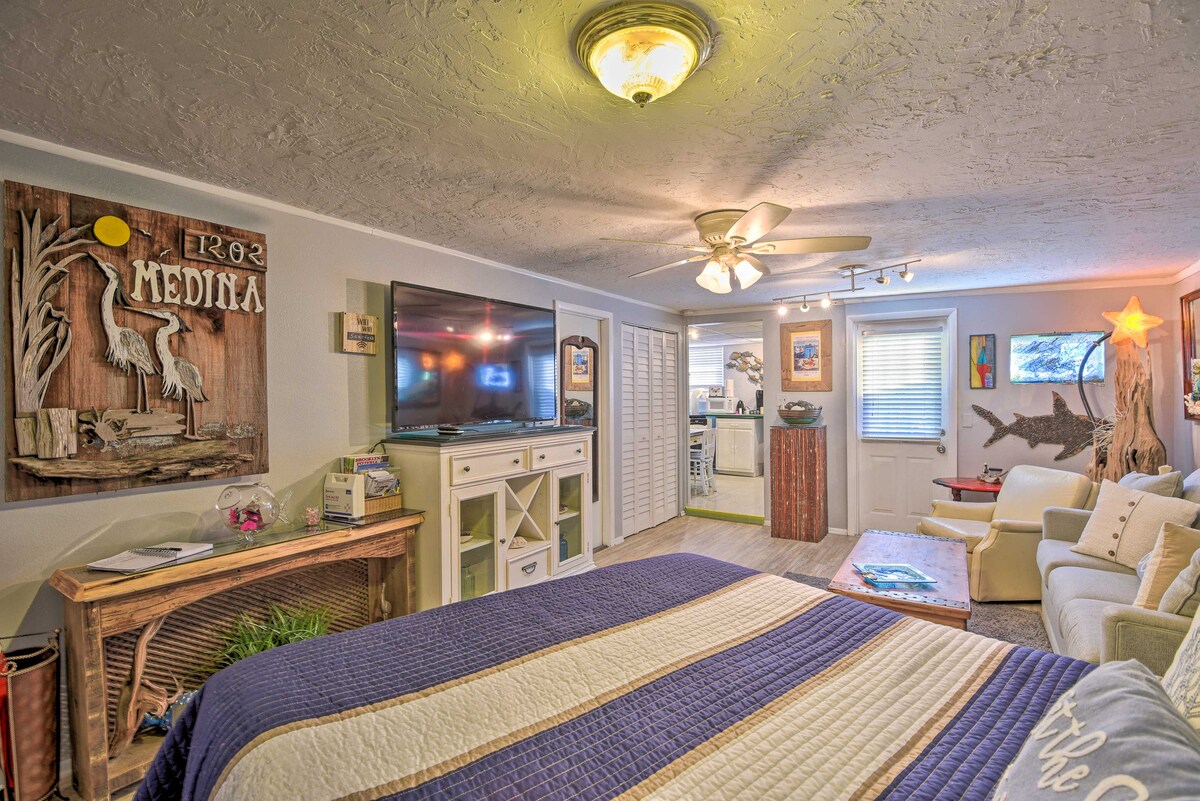 Відпочинок для пар | < півмилі до парку Sarasota Jungle Gardens Відчуйте ідеальне поєднання відпочинку, зручності та сонячних розваг, коли ви вирушите з особливою людиною до цього помешкання для відпочинку в Сарасоті. Насолоджуйтеся освіжаючим купанням або відпочинком у гамаку, а потім прогулюйтеся кварталом до затоки та насолоджуйтеся прекрасним заходом сонця. Залишаєтеся вдома? У цій студії з однією ванною кімнатою є все необхідне: чарівний житловий простір, робоче місце та пральня. Яскраве культурне узбережжя чекає на вас!