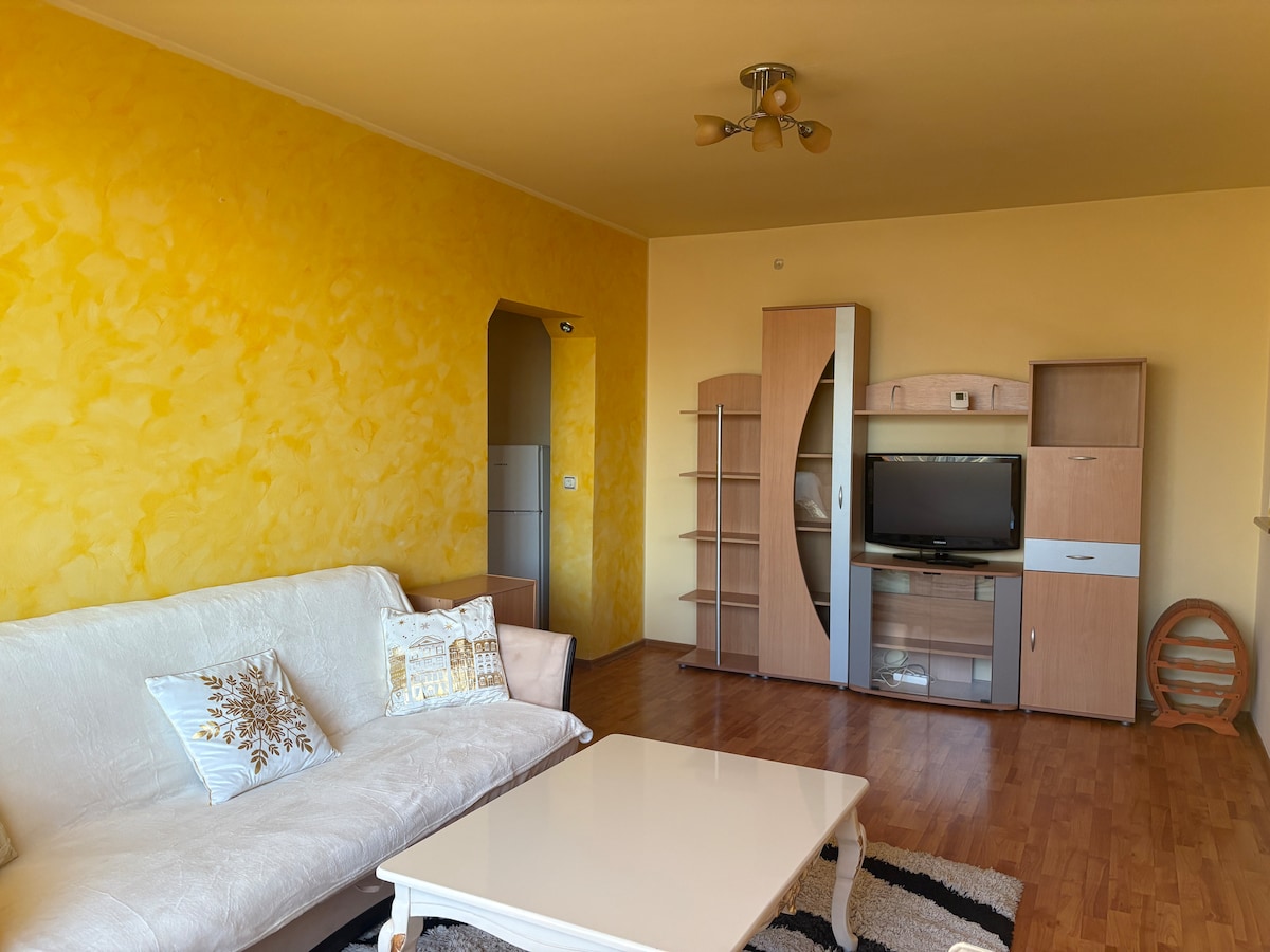 Our charming 2-bedroom apartment is located just 10 minutes from the Făgăraș Citadel, and offers the perfect balance of modern convenience and cozy ambiance. Whether you're exploring the city or working remotely, this is your ideal place. •Video projector, in the living room, for movie nights •Fully equipped kitchen with electric stove, electric oven, and a Nespresso coffee machine •2 modern bathrooms: walk-in showers, towels, and hair dryers for your convenience •2 balconies •2 parking lots