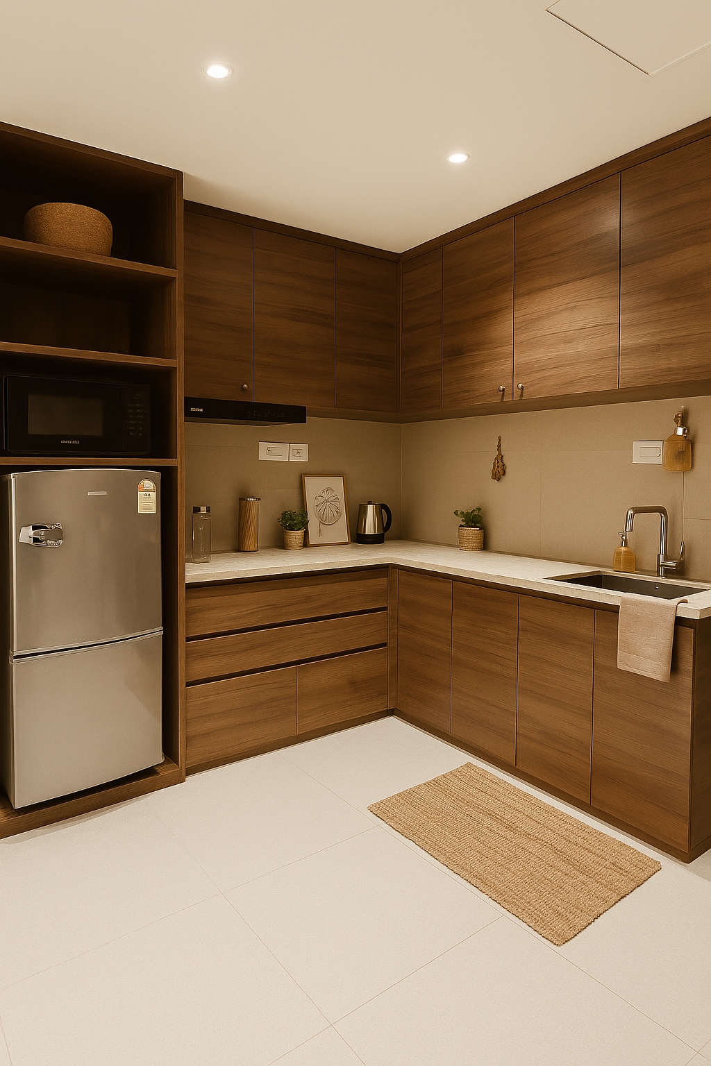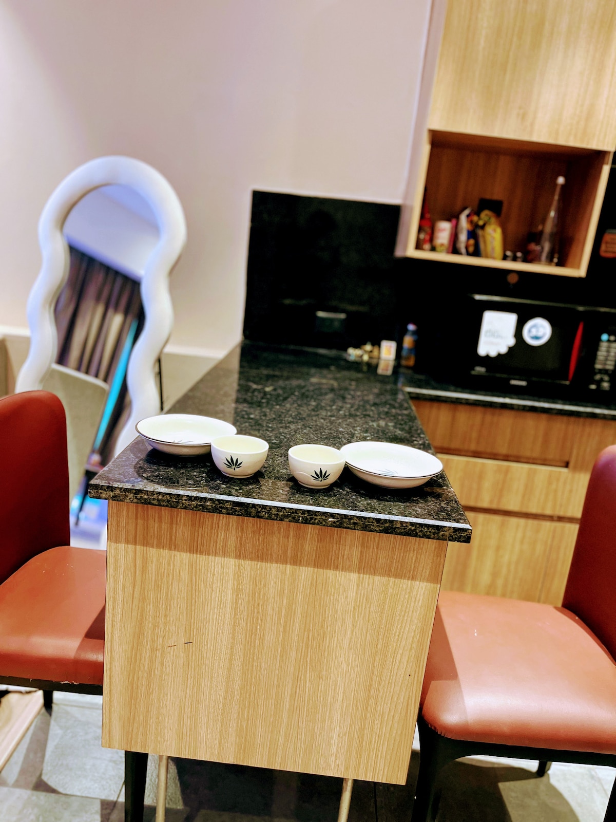 Відчуйте комфорт і стиль у помешканні, створеному для роботи та відпочинку. Відпочиньте на ортопедичному матраці Wakefit і насолодіться теплим освітленням. Залишайтеся продуктивними завдяки ергономічному робочому простору та розслабляйтеся за переглядом улюблених програм на двох 42-дюймових телевізорах. У суміжній ванній кімнаті є туалетні приналежності преміум-класу та дзеркало з підсвічуванням. Готуйте без зусиль на повністю обладнаній кухні. Відпочиньте на дивані в помешканні, де ідеально поєднуються спокій, продуктивність і стиль життя.